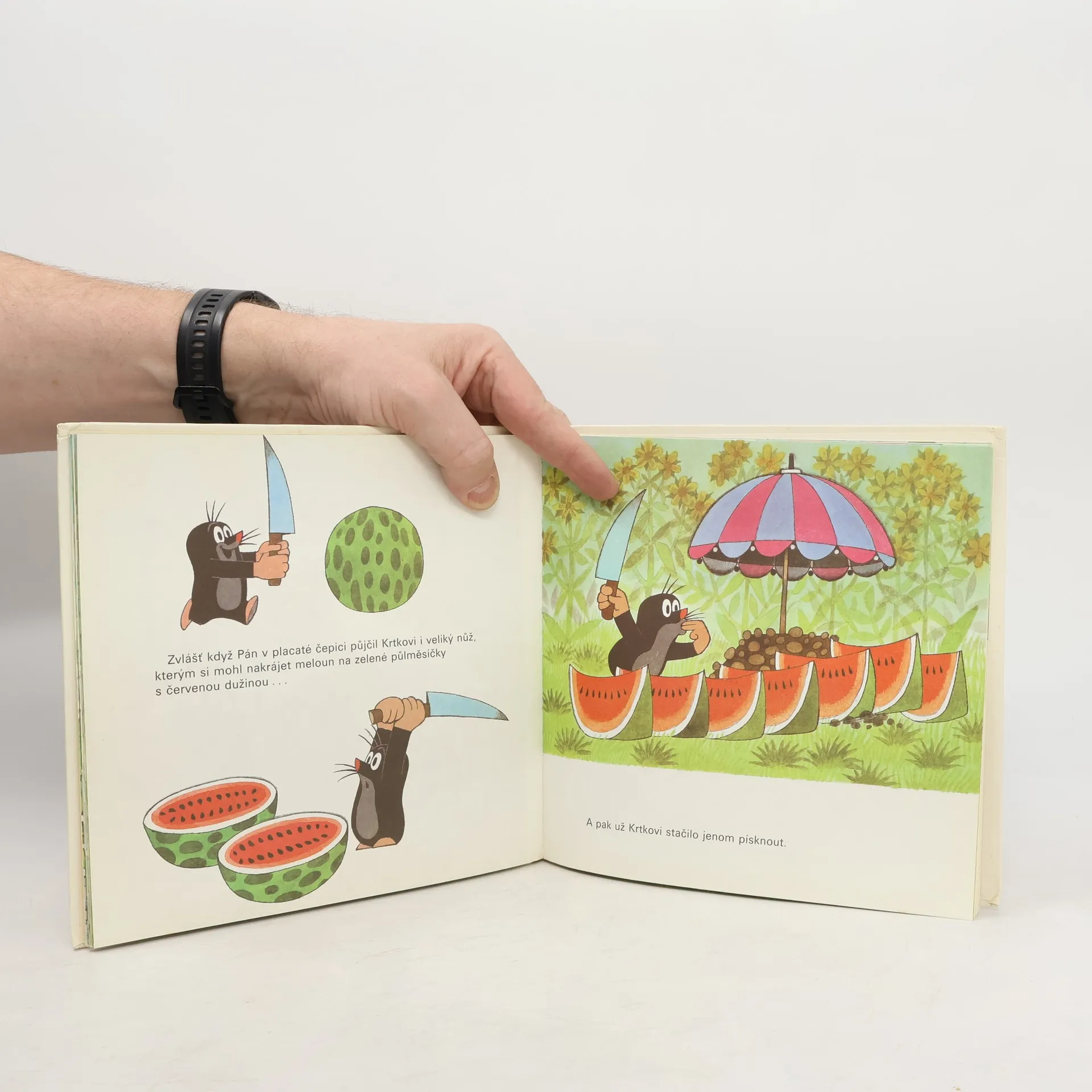 Další veselá dobrodružství Krtka, která děti už znají z kresleného filmu. Tentokrát si Krtek užije spoustu legrace s polámaným paraplíčkem, které našel na skládce. Opraví ho a pak už ho čeká jen zábava. Pluje na něm po řece a zachrání s jeho pomocí kamaráda zajíce před zlým psem. Na louce objeví pána, který má podobné paraplíčko a prodává pod ním melouny. Jeden od něj dostane a rozdělí se s ostatními zvířátky.... celý text