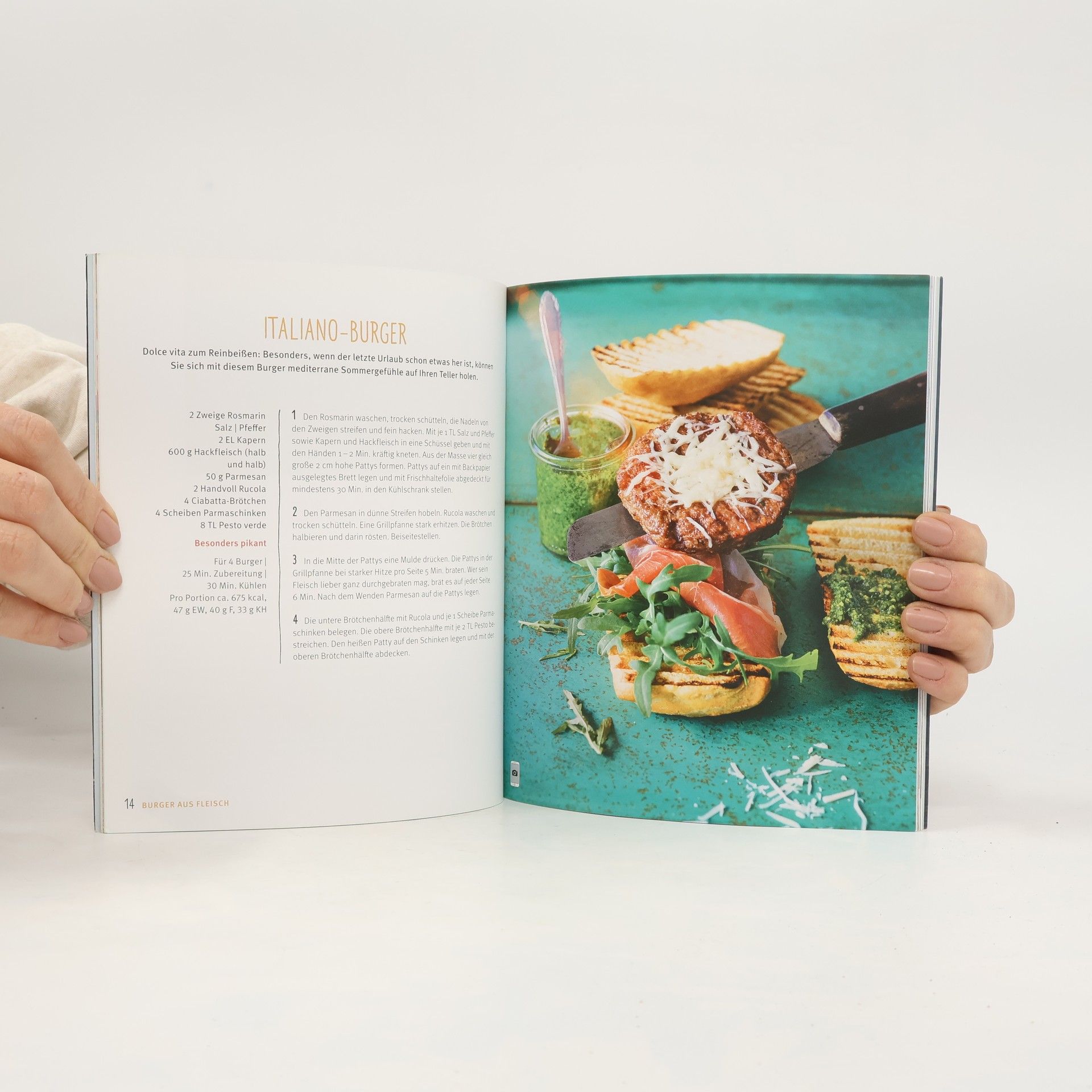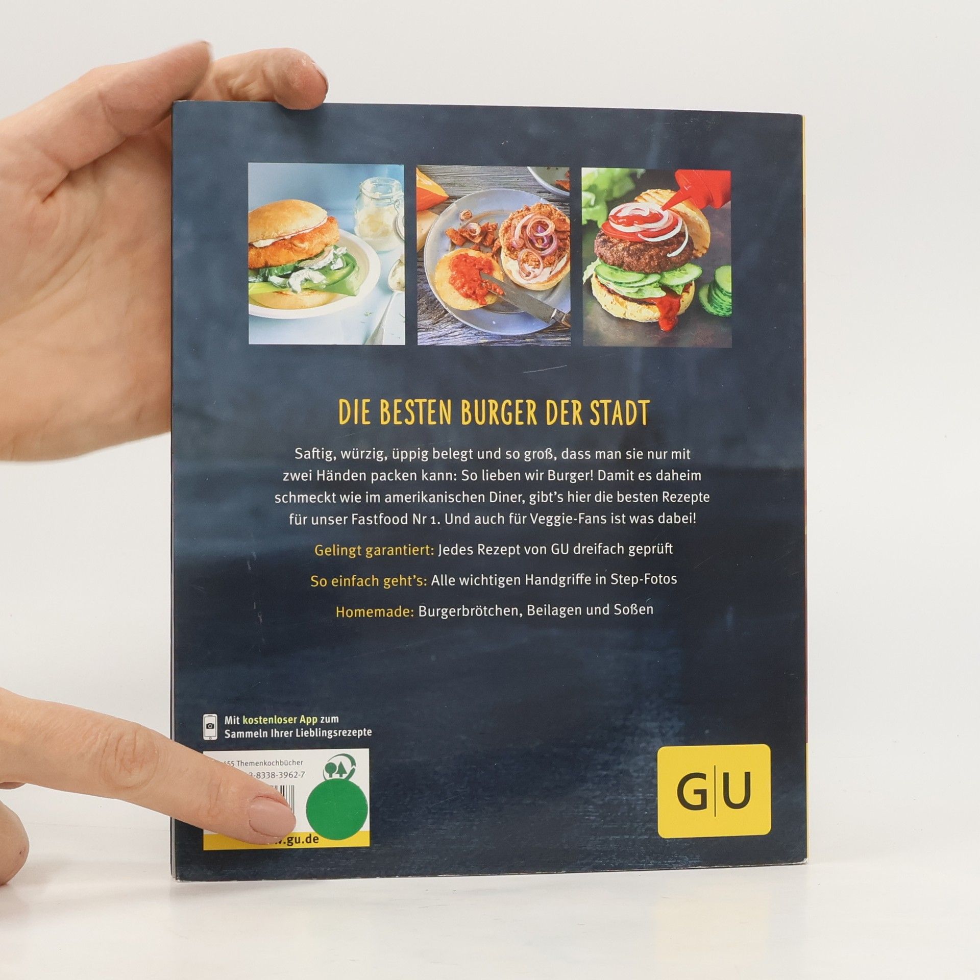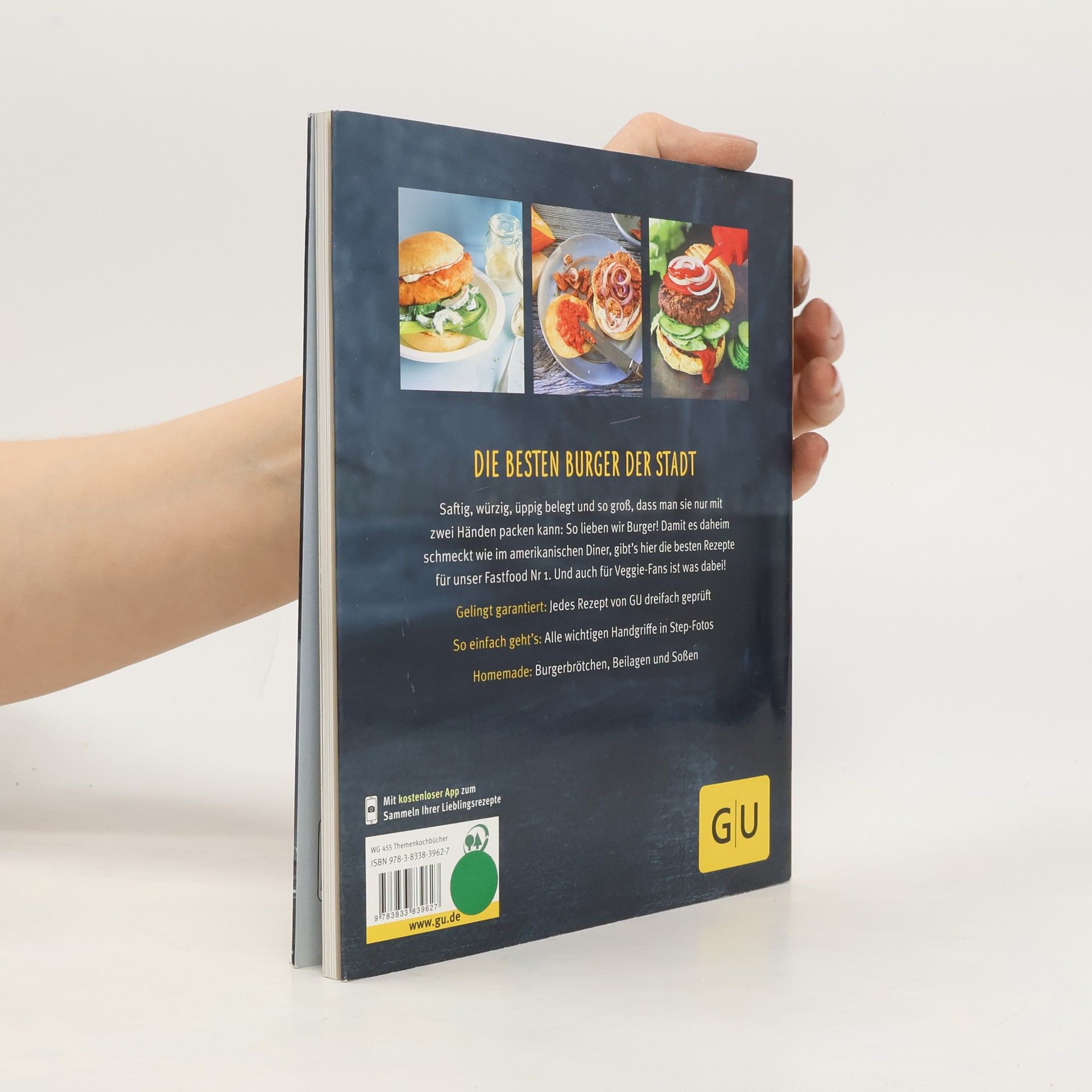 Die besten Burger der Stadt gibt’s jetzt zu Hause!Früher war ein Burger nur ein Burger, aber mittlerweile hat sich der saftige Hochstapler zum echten Allrounder entwickelt. Zwischen die Brötchenhälften kann man alles packen, worauf man Lust und Laune hat: Erlaubt ist, was schmeckt - und am besten schmeckt es selbst gemacht! Sie haben Hunger auf neue Ideen für Ihr Lieblings-Fastfood? Dann kommt der GU-Küchenratgeber Burger gerade recht. Ob Crispy-Chicken-Burger, Sonntags-Burger mit Kasseler oder Seelachs-Burger mit Gurkensalat - da läuft einem schon beim Blättern das Wasser im Mund zusammen. Zubereitet werden die Pattys in der Pfanne, im Ofen oder auf dem Grill, und das Beste: Auch das Brötchen, sonst nur labbrige Fertigware, wird selbst gemacht. Dazu gibt es würzige Saucen und knusprige Fritten oder Coleslaw. Vegetarier kommen beim Mexicana-Burger ins Schwärmen, und mit Entenbrust und Cranberry-Chutney wird der Burger sogar als Weihnachtsessen salonfähig. Und dann sollte man ihn auch mal ganz stilvoll mit Messer und Gabel essen. Das steckt im Buch: Grundrezept Burger-BrötchenJetzt wird's heiß: Grillen, braten, backen Mit FleischMit Fisch und GeflügelVegetarisch und vegan Burger im BauGeschmack on top: BurgersaucenLeckeres dazu: Coleslaw, Fritten & Co.