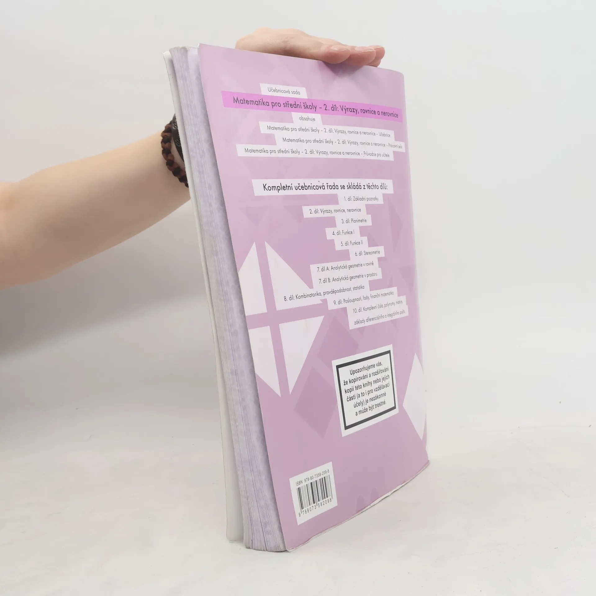 Skladem máme celkem knihy Matematika pro střední školy. 2. díl, Výrazy, rovnice a nerovnice. Pracovní sešit (2013).