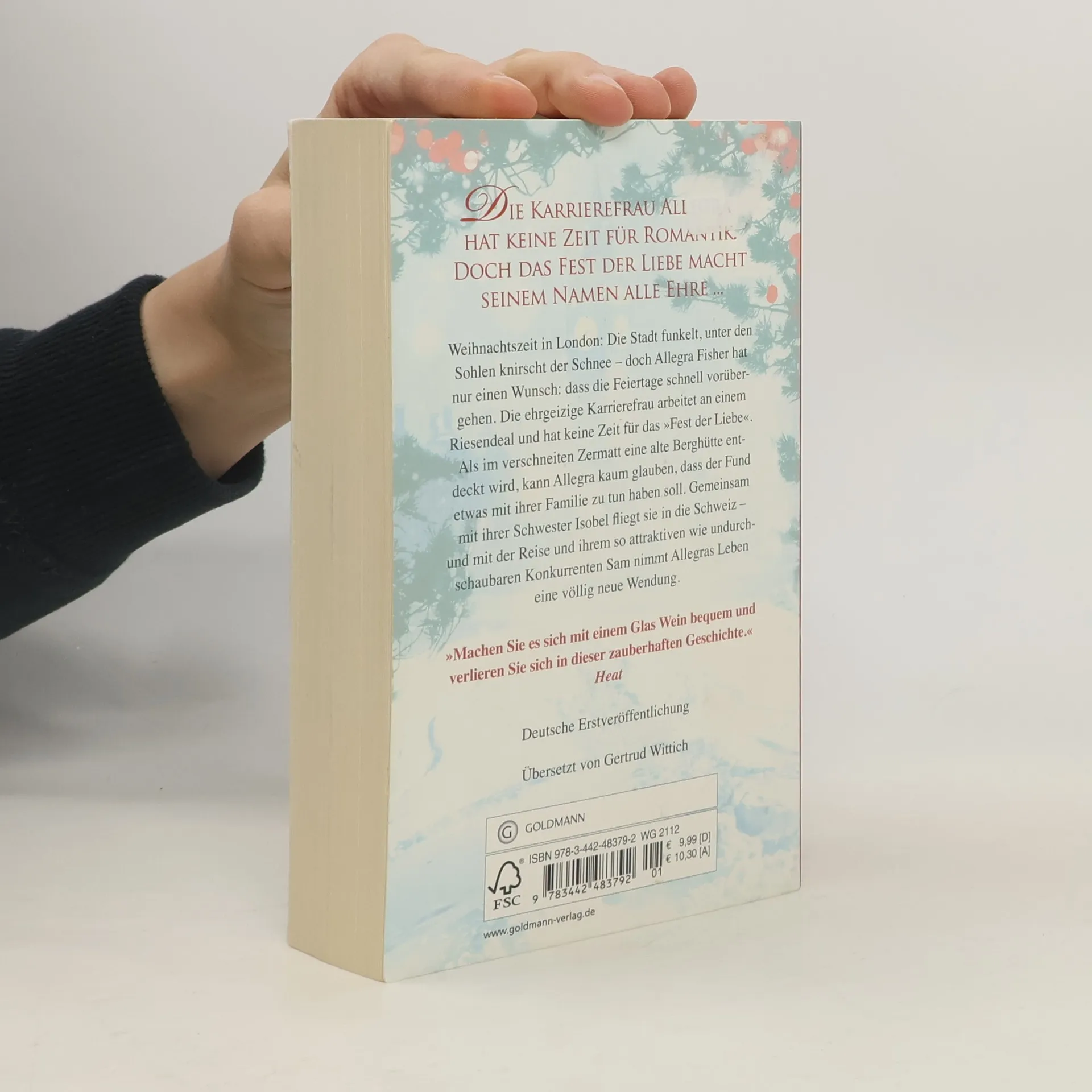 Karrierefrau Allegra hat keine Zeit für Romantik. Doch das Fest der Liebe macht seinem Namen alle Ehre ... Weihnachtszeit in London: Die Stadt funkelt, unter den Sohlen knirscht der Schnee – doch Allegra Fisher hat nur einen Wunsch: dass die Feiertage schnell vorübergehen. Die Karrierefrau arbeitet an einem Riesendeal und hat keine Zeit für das »Fest der Liebe«. Als im verschneiten Zermatt eine alte Berghütte entdeckt wird, kann Allegra kaum glauben, dass der Fund etwas mit ihrer Familie zu tun haben soll. Gemeinsam mit ihrer Schwester Isobel fliegt sie in die Schweiz – und mit der Reise und ihrem attraktiven Konkurrenten Sam nimmt Allegras Leben eine neue Wendung. Vielleicht wird es doch ein Fest der Liebe ...