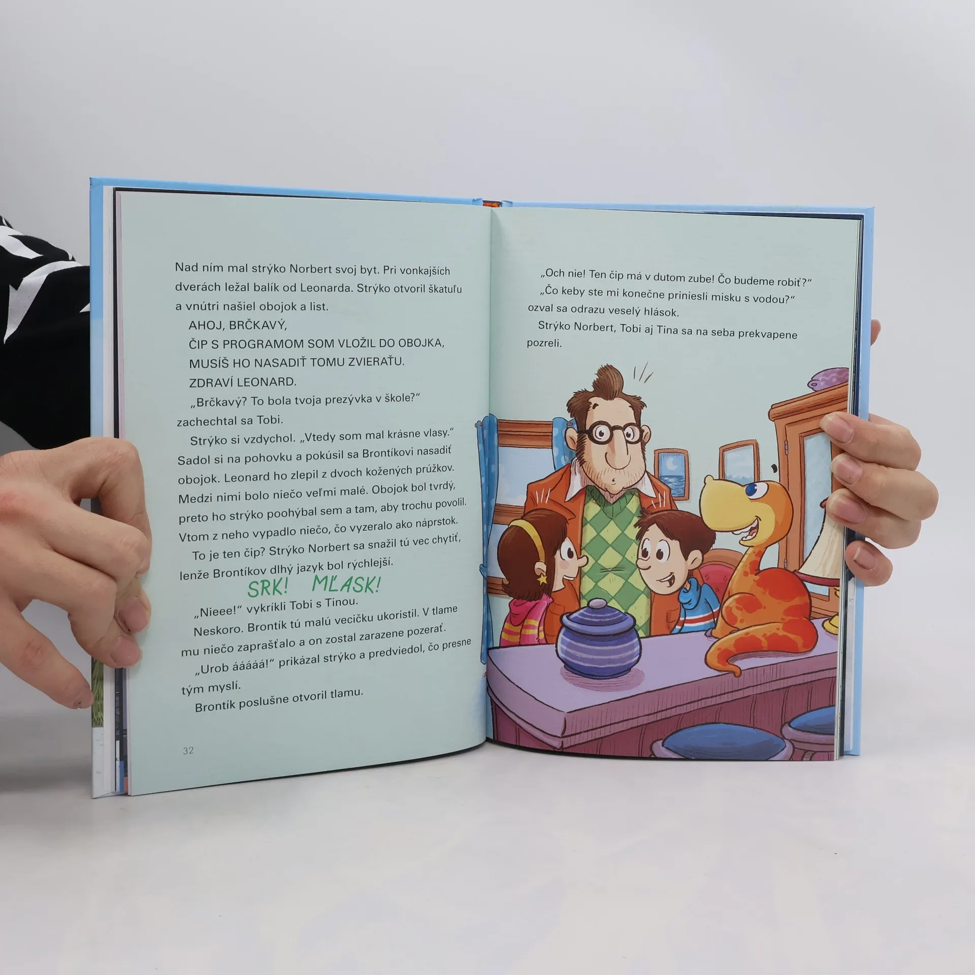 Takého domáceho maznáčika nemá nikto! Keď sa dvojčatá Tina a Tobi vyberú so svojím strýkom Norbertom na lyžovačku, nemajú ani najmenšej potuchy, že v horách nájdu jaskyňu a v nej... zamrznuté dinosaurie mláďa. A už vôbec by im nenapadlo, že keď ho odnesú do hotela, rozmrzne a prebudí sa k životu. Brontík čoskoro porozumie ľudskej reči, a tak sa pre Tinu a Tobiho začne najlepšie dobrodružstvo všetkých čias. Dvojčatám je jasné, že s takýmto domácim miláčikom sa už nikdy nebudú nudiť!