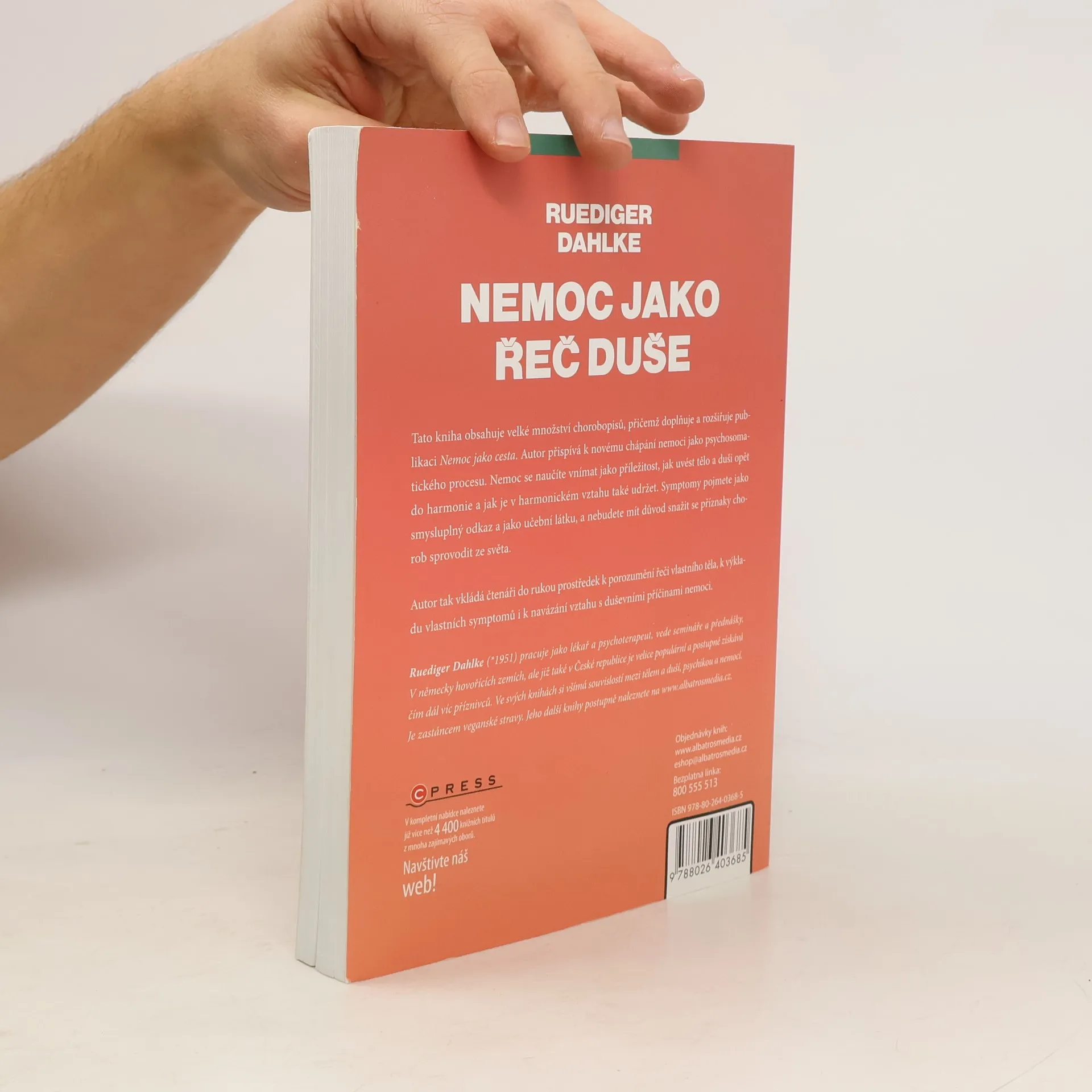 Autor zde vkládá čtenáři do rukou prostředek k porozumění řeči vlastního těla, k výkladu vlastních symptomů i k navázání vztahu s duševními příčinami nemoci. Tato kniha obsahuje velké množství chorobopisů, přičemž doplňuje a rozšiřuje publikaci Nemoc jako cesta. Ruediger Dahlke přispívá k novému chápání nemoci jako psychosomatického procesu. Nemoc se naučíte vnímat jako příležitost, jak uvést tělo a duši opět do harmonie a jak je v harmonickém vztahu také udržet. Symptomy pojmete jako smysluplný odkaz a jako učební látku, a nebudete mít důvod snažit se příznaky chorob sprovodit ze světa. Dr. Ruediger Dahlke je lékař a psychoterapeut, zabývající se psychosomatickou medicínou, homeopatií a přírodní léčbou.