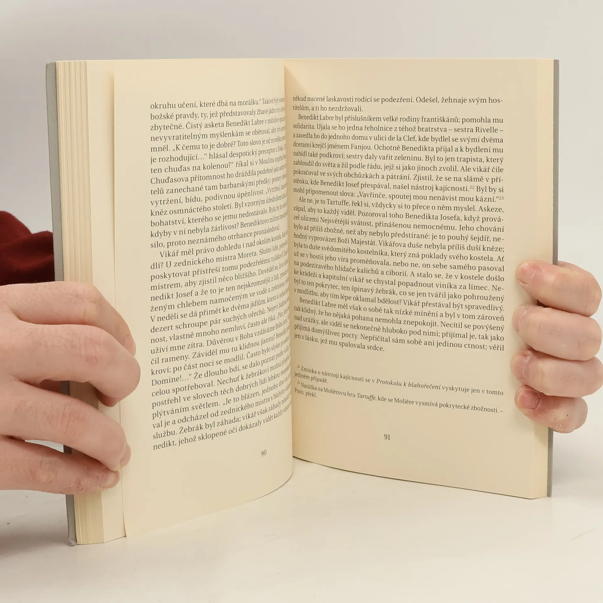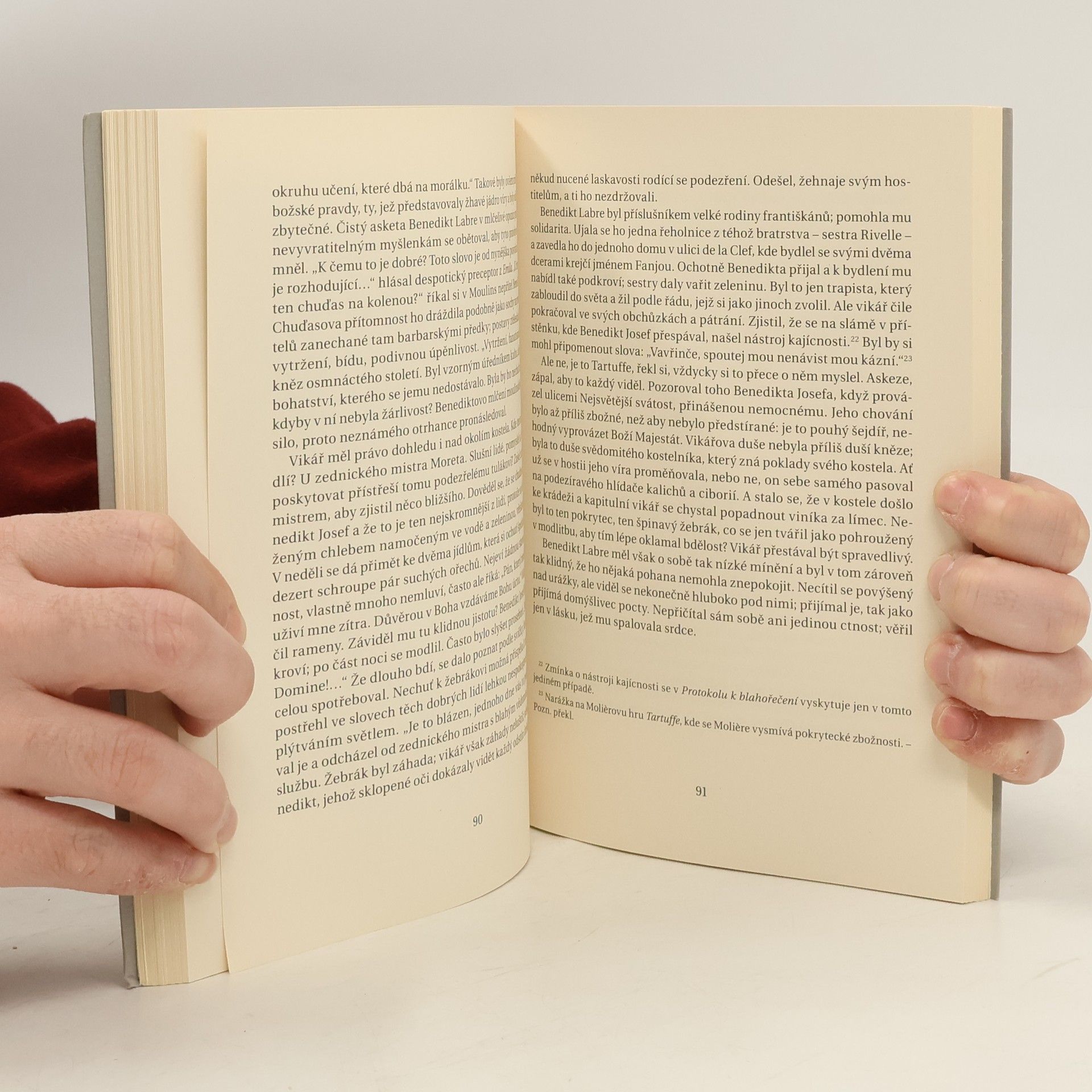 Benedikt-Joseph Labre (25. nebo 26. 3. 1748, Amettes – 16. 4. 1783, Řím) nechodil po světě dlouho. Zemřel mlád, v Římě, v předvečer Francouzské revoluce, avšak délka života nerozhoduje. Rozhoduje intenzita, přínos, svatost. Nejstarší selský syn ze severofrancouzského kraje Artois odmítl právo na rodinný grunt. Jeho srdce toužilo po nejpřísnějším klášteře. Ale pro tělesnou i duševní křehkost se nikdy v klášterních zdech nezabydlel. Vzdal se pro Boha všeho, a Bůh mu za to odmítal splnit jeho touhu. Tak se Benedikt vydal na cestu. Stal se poutníkem a své odříkání si nosil s sebou. Jeho krajní askeze se oblékla do provazů deště v apeninských údolích, do hmyzích parazitů zalézajících mu pod oblečení, do opakovaného kamenování římskými výrostky, do oběda z neoloupaných pomerančů a ztvrdlého chleba. Postupem času začali lidé pociťovat Benediktovu svatost. Léčil, viděl jim do srdce, zářil, přes svůj odpudivý zjev. Tento u nás téměř neznámý svatý nemluvil mnoho, ale jím promlouval Bůh. Po dočtení knihy znamenité francouzské autorky Agnes de la Gorce (1895–1976) možná leckdo pocítí – jako mnozí, kdo se s Benediktem setkali –, že nechce, aby odcházel z jeho života. Před steskem po tomto svatém žebrákovi nemusí být uchráněni ani čtenáři, kteří nevyznávají křesťanskou víru.