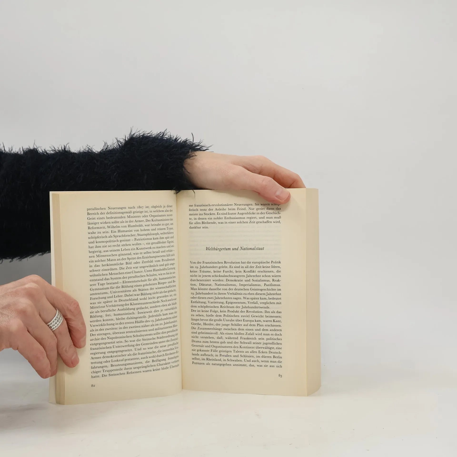 »Wer sich in die Geschichte der deutschen Nation vertieft, der hat leicht den Eindruck eines unruhigen Lebens in Extremen ... Einmal erreichen deutsche Gestalten die höchsten geistigen Höhen, auf denen je Menschen gelebt haben, indessen gleichzeitig trübe Mittelmäßigkeit den öffentlichen Ton beherrscht. Von apolitischer Ruhe wendet Deutschland sich zur aufgeregtesten politischen Tätigkeit, von buntscheckiger Vielgestalt zu radikaler Einheitlichkeit; aus Ohnmacht erhebt es sich zu aggressiver Macht, sinkt zurück in Ruin, erarbeitet sich in unglaublicher Schnelle neuen, hektischen Wohlstand. Es ist weltoffen, kosmopolitisch, mit Bewunderung dem Fremden zugeneigt; dann verachtet und verjagt es das Fremde und sucht das Heil in übersteigerter Pflege seiner Eigenart. Die Deutschen gelten als das philosophische, spekulative Volk, dann wieder als das am stärksten praktische, materialistische, als das geduldigste, friedlichste, und wieder als das herrschsüchtigste, brutalste. Ihr eigener Philosoph, Nietzsche, hat sie das 'Täusche-Volk' genannt, weil sie die Welt immer wieder mit Dingen überraschen, die man gerade von ihnen nicht erwartet.« Golo Mann