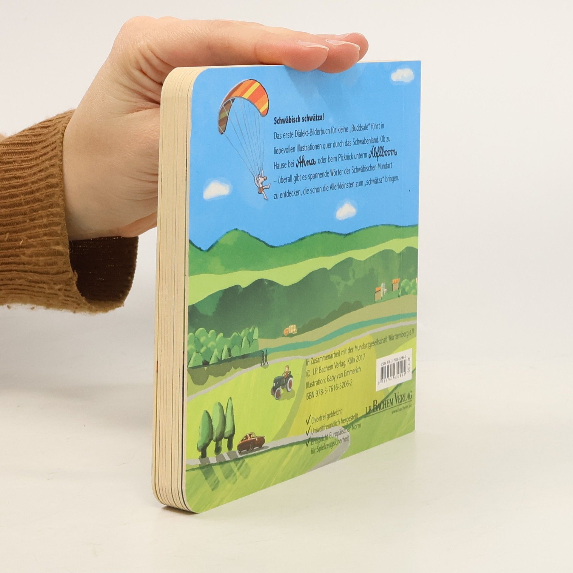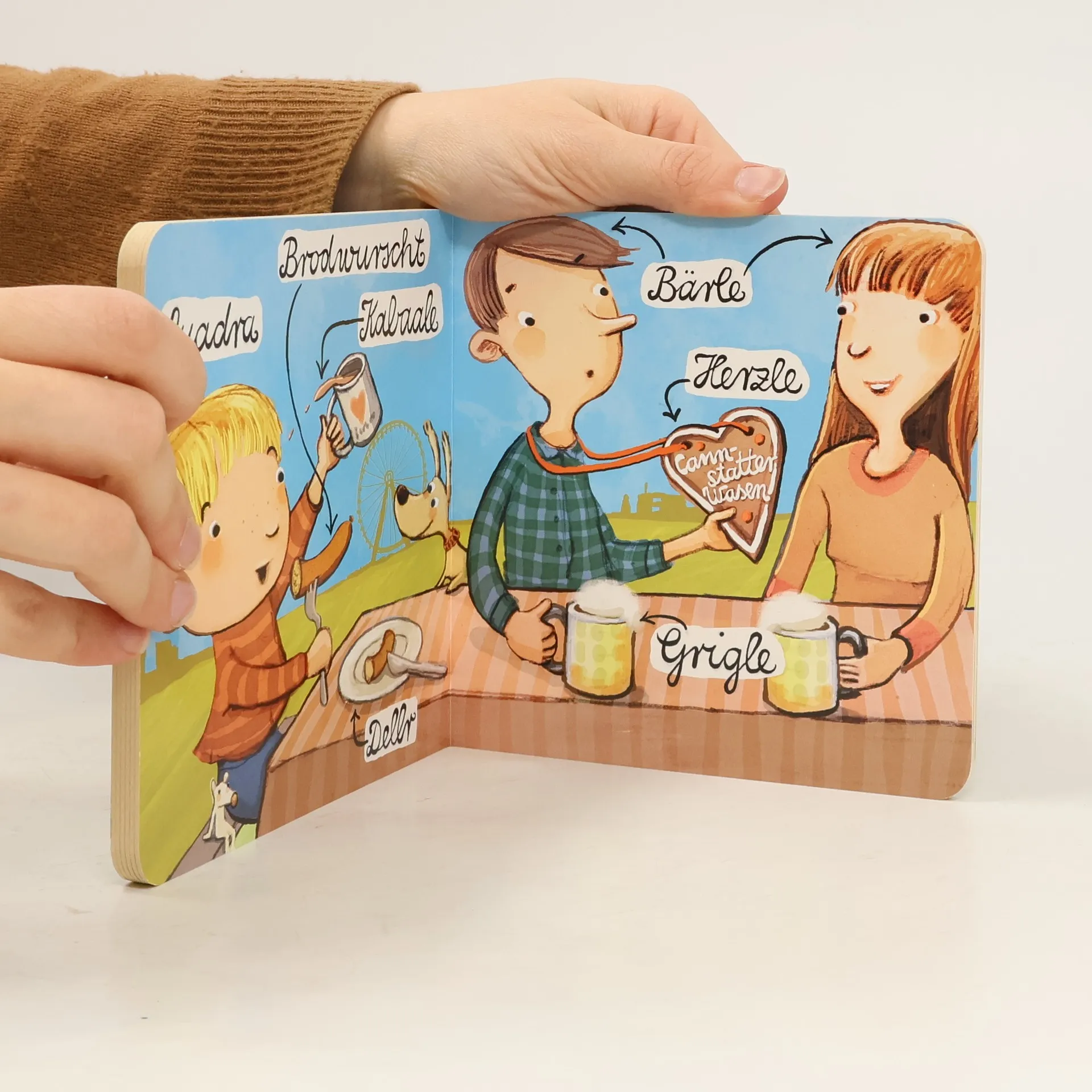 Droddwaar, Weggle, Schlabbr Beißerla ... Egal ob als Zugezogener oder Urschwabe – dieses kleine Buch führt Kinder spielerisch an den süddeutschen Dialekt heran und bereitet dabei auch den Großen einen Riesenspaß. Der Einkaufsbummel in der Stuttgarter Innenstadt, der Gang zum hiesigen Bäcker oder die württembergische Kehrwoche – auf neun Papp-Doppelseiten werden in liebevoll illustrierten Szenen typisch schwäbische Begriffe dargestellt. Ein Highlight und ein großer (Vor-)Lesespaß für Liebhaber der Mundart!