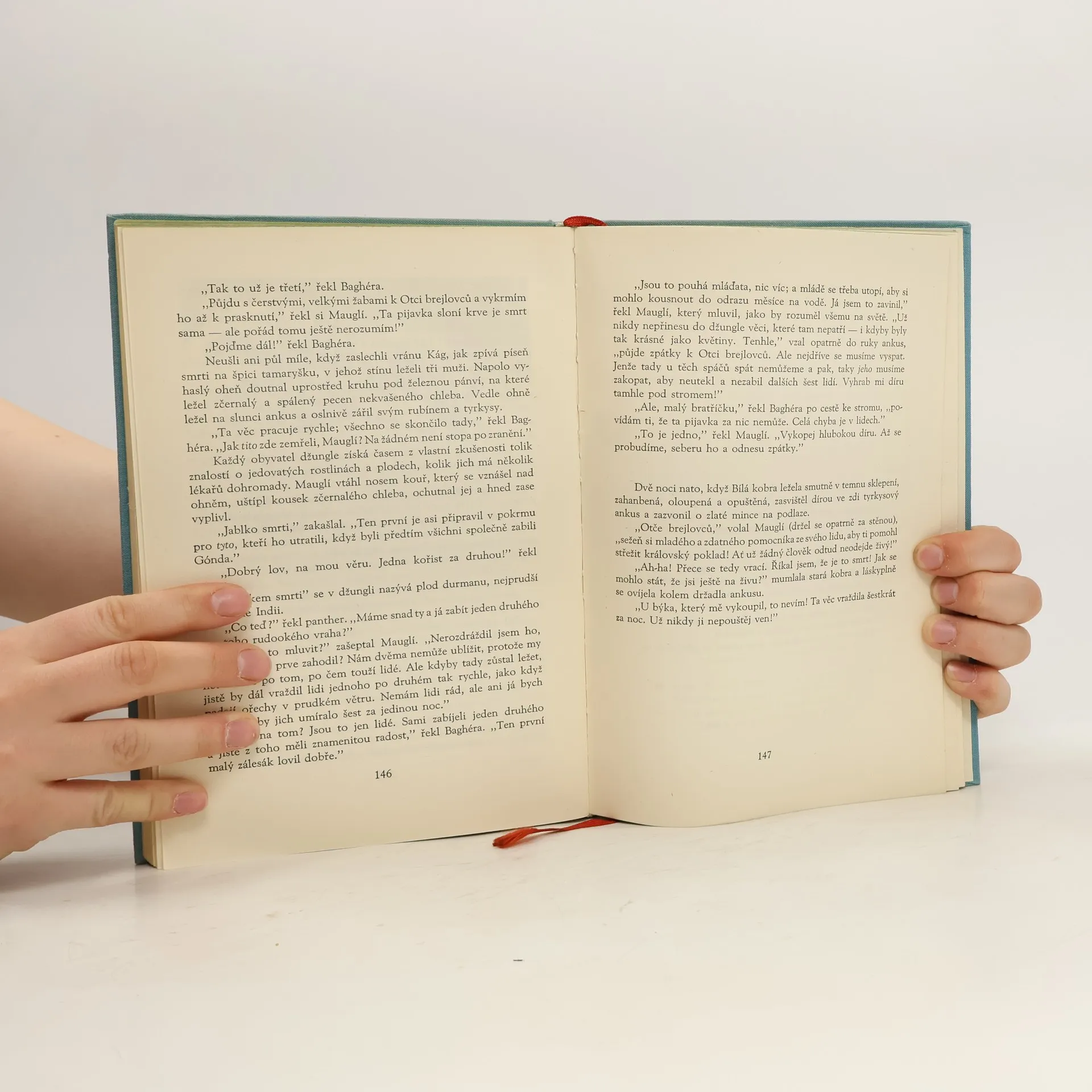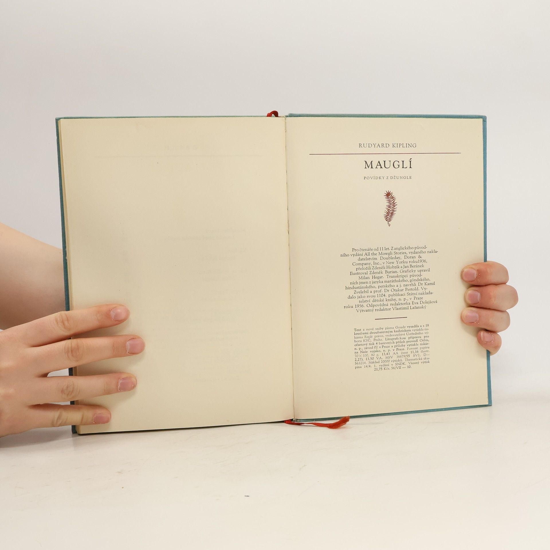 Povídky z džungle. Příběh Mauglího. Dejištěm povídek o Mauglím jsou překrásné, rozlehlé džungle v jižní části střední Indie-v provincii Madhjapradéš. Město Séóní leží při silnici, jež spojuje Džabalpur a Nágpur, zhruba uprostřed vzdálenosti mezi nimi. Séóníský okres je skorocelý pokryt hlubokými hustými lesy, kde žije ve velikých množstvích rozmanitá divoká zvěř. V těchto džunglích, které patří k nejkrásnějším v celé Indii, loví obyvatelstvo jednak zvěř, jednak se živí těžbou bambusu nebo tvrdého, načervenalého těkového dřeva, výborného na stavbu lodí. Séóníským okresem se vine horní tok řeky Vajngangy, jež dosahuje šíře až 270 m a jejíž celková délka od pramene po soutok s Gódávarou činí 560 km. Kapitoly: Mauglího bratři-Lovecká píseň séóníské smečky, Ká loví-Pochod Bandarů, Jak se zrodil Strach-Zákon džungle, "Tygr ! Tygr !-Mauglího píseň, Vpád džungle-Mauglího zpěv proti lidem, Králův ankus-Píseň malého lovce, Rezavý pes-Čílův zpěv, Jarní běh-Zpěv na rozloučenou. První vydání v SNDK. Cena knihy v čase vydání: 21,75 Kčs.