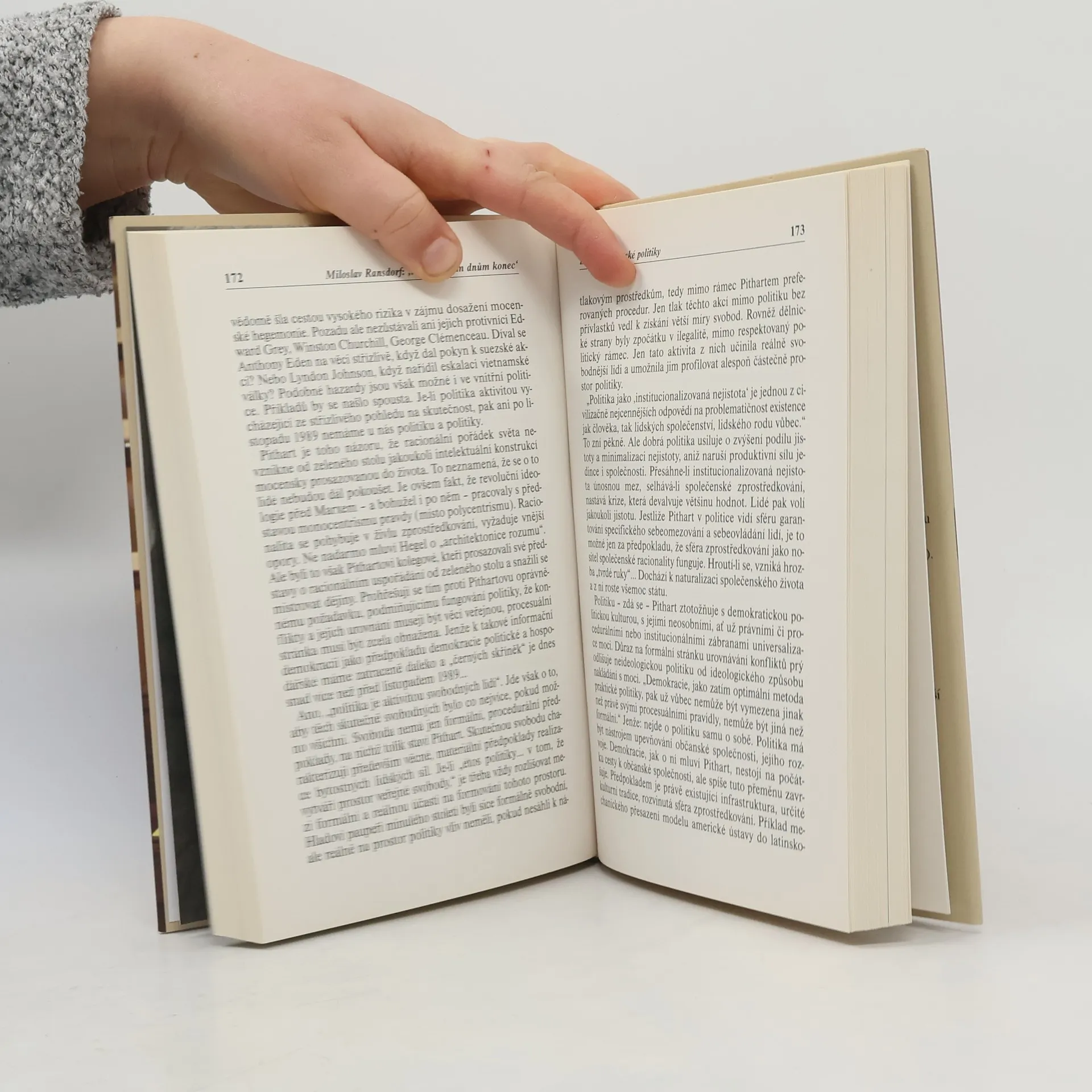 Autor, výrazný představitel současné levice, v polemice s teoretickými východisky V. Havla, V. Klause, P. Pitharta, M. Zemana a V. Komárka představuje "myšlenkovou tvář" těchto nejvýraznějších představitelů a teoretiků sametové revoluce. Hodnotí jejich vědecké a koncepční kvality v širších souvislostech evropské a světové politiky, filozofie i historie. Polemika je vedena z pozic levicového intelektuála. Závěrečnou část publikace tvoří úvaha o současné podobě světa, kterou autor nepovažuje za příslovečný "konec dějin". Tvrdí, že civilizační problémy našeho věku mají řešení a reálnou alternativu vývoje. V tomto kontextu představuje jednotlivé programové teze českých komunistů Autorské polemiky s ideovými systémy a politickými koncepcemi osobností, které rozhodujícím způsobem ovlivnily transformaci české společnosti po r. 1989