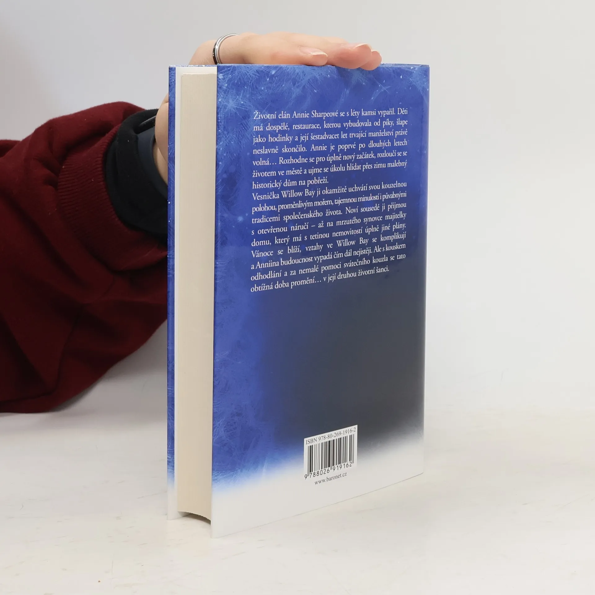 Životní elán Annie Sharpeové se s léty kamsi vypařil. Děti má dospělé, restaurace, kterou vybudovala od píky, šlape jako hodinky a její šestadvacet let trvající manželství právě neslavně skončilo. Annie je poprvé po dlouhých letech volná… Rozhodne se pro úplně nový začátek, rozloučí se s životem ve městě a ujme se úkolu hlídat přes zimu malebný historický dům na pobřeží. Vesnička Willow Bay ji okamžitě uchvátí svou kouzelnou polohou, proměnlivým mořem, tajemnou minulostí i půvabnými tradicemi společenského života. Noví sousedé ji přijmou s otevřenou náručí – až na mrzutého synovce majitelky domu, který má s tetinou nemovitostí úplně jiné plány. Vánoce se blíží, vztahy ve Willow Bay se komplikují a Anniina budoucnost vypadá čím dál nejistěji. Ale s kouskem odhodlání a za nemalé pomoci svátečního kouzla se tato obtížná doba promění… v její další životní naději.