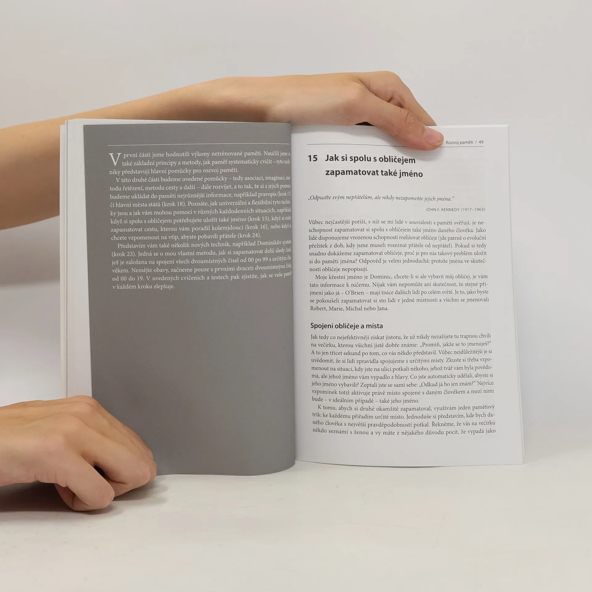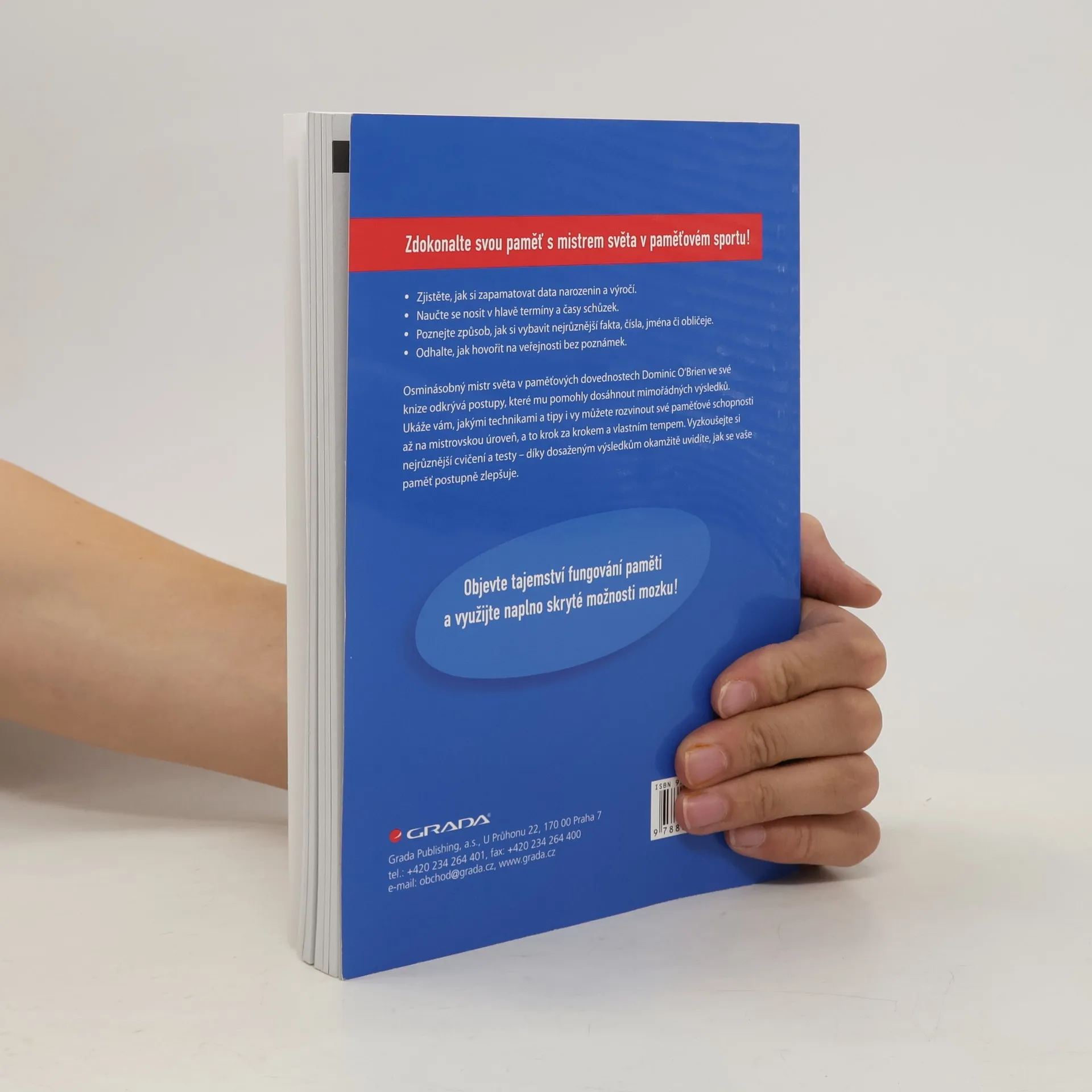 Vydejte se na cestu s mistrem svého oboru a objevte skrytá tajemství fungování paměti - Zjistěte, jak si zapamatovat data narozenin a výročí. - Naučte se nosit v hlavě termíny a časy schůzek. - Poznejte způsob, jak si vybavit nejrůznější fakta, čísla, jména či obličeje. - Odhalte, jak hovořit na veřejnosti bez poznámek. Osminásobný mistr světa v paměťových dovednostech Dominic O‘Brien ve své knize předkládá ucelený soubor technik, jak si zdokonalit paměť – krok za krokem se tak můžete naučit vše potřebné. V 52 kapitolách autor systematicky představuje ověřené postupy, které mu pomohly dosáhnout mistrovských výsledků. Vždy přitom vychází ze svých hlubokých znalostí toho, jak mozek reaguje na paměťová cvičení. S pomocí předkládaných technik a tipů budete moci rozvíjet své paměťové schopnosti až na mistrovskou úroveň, a to svým vlastním tempem. Vyzkoušejte si nejrůznější cvičení a testy – díky dosaženým výsledkům okamžitě uvidíte, jak se vaše paměť postupně zlepšuje. Využijte naplno skryté možnosti mozku!