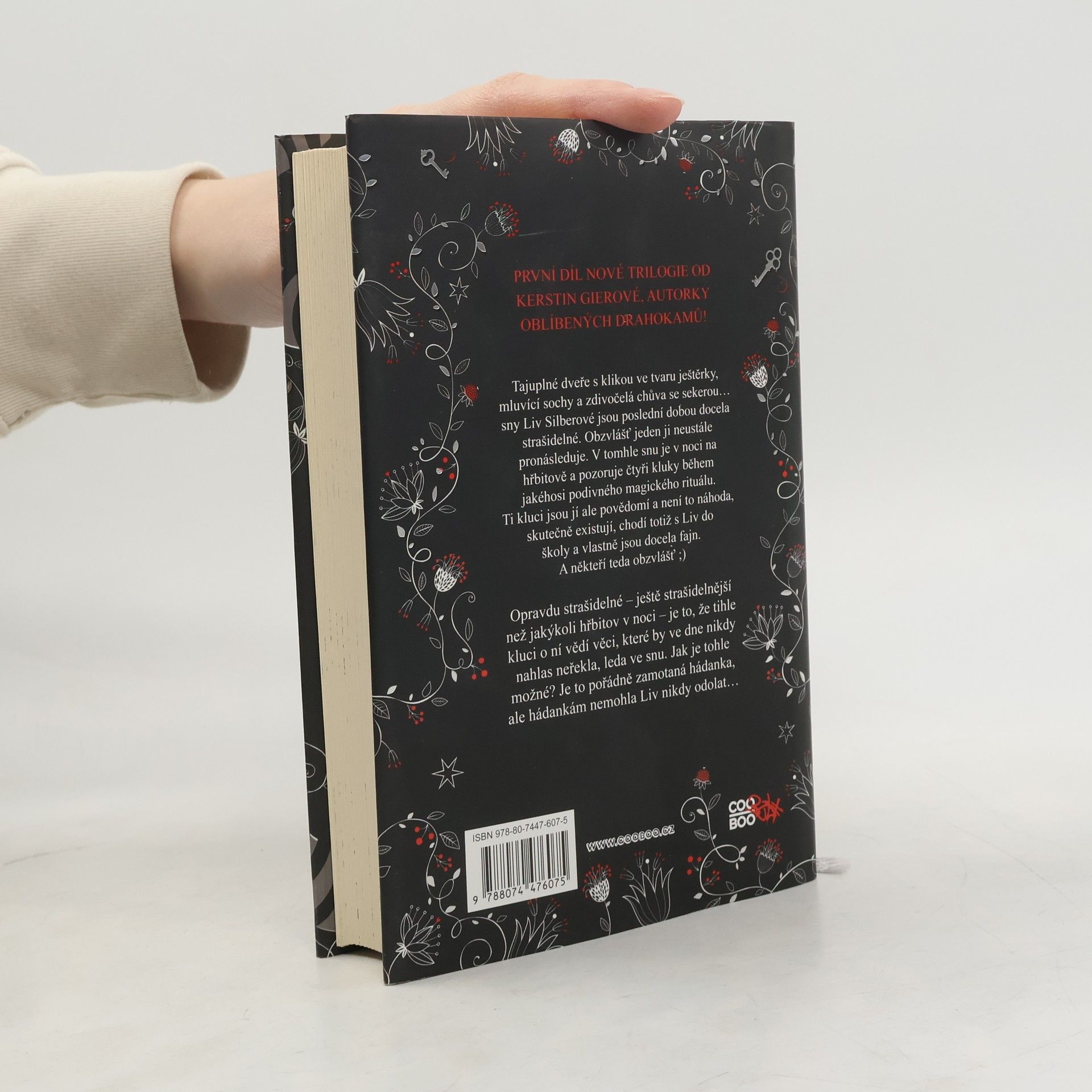 První díl nové trilogie od Kerstin Gierové, autorky oblíbených Drahokamů! Tajuplné dveře s klikou ve tvaru ještěrky, mluvící sochy a zdivočelá chůva se sekerou… sny Liv Silberové jsou poslední dobou docela strašidelné. Obzvlášť jeden ji neustále pronásleduje. V tomhle snu je v noci na hřbitově a pozoruje čtyři kluky během jakéhosi podivného magického rituálu. Ti kluci jsou jí ale povědomí a není to náhoda, skutečně existují, chodí totiž s Liv do školy a vlastně jsou docela fajn. A někteří teda obzvlášť ;) Opravdu strašidelné – ještě strašidelnější než jakýkoli hřbitov v noci – je to, že tihle kluci o ní vědí věci, které by ve dne nikdy nahlas neřekla, leda ve snu. Jak je tohle možné? Je to pořádně zamotaná hádanka, ale hádankám nemohla Liv nikdy odolat…