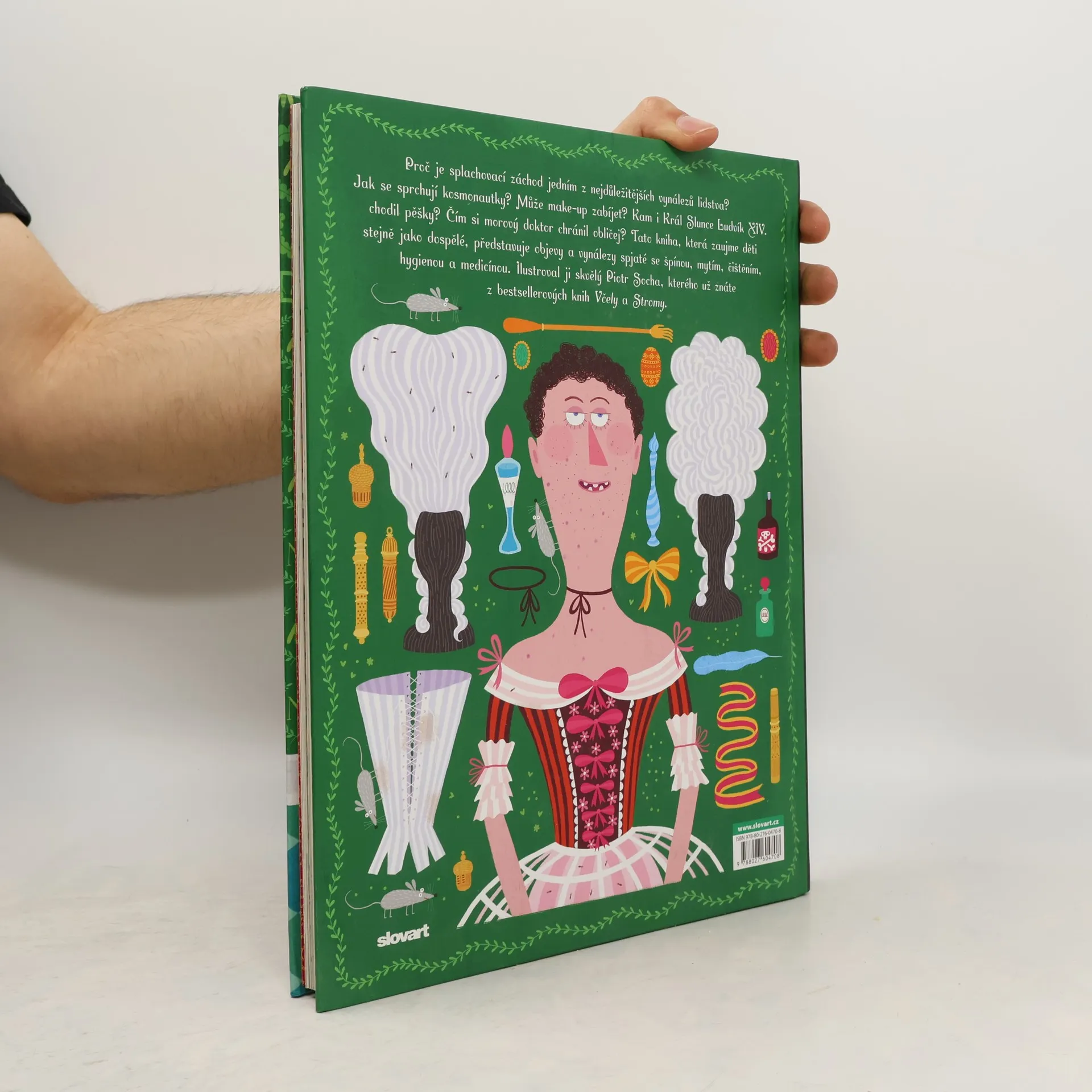 Proč je splachovací záchod jedním z nejdůležitějších vynálezů lidstva? Jak se sprchují kosmonautky? Může make-up zabíjet? Kam i Král Slunce Ludvík IV. chodil pěšky? Čím si morový doktor chránil obličej? Tato kniha, která zaujme děti stejně jako dospělé, představuje objevy a vynálezy spjaté se špínou, mytím, čištěním, hygienou a medicínou. Ilustroval ji skvělý Piotr Socha, kterého už znáte z bestsellerových knih Včely a Stromy.