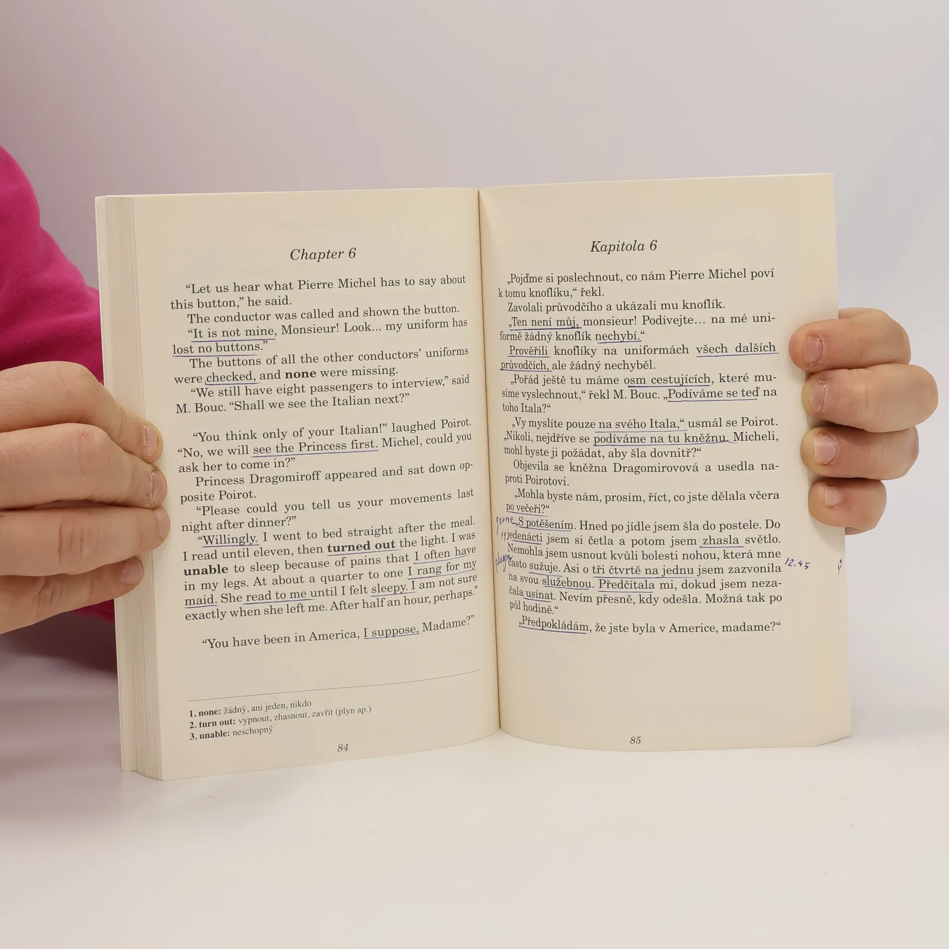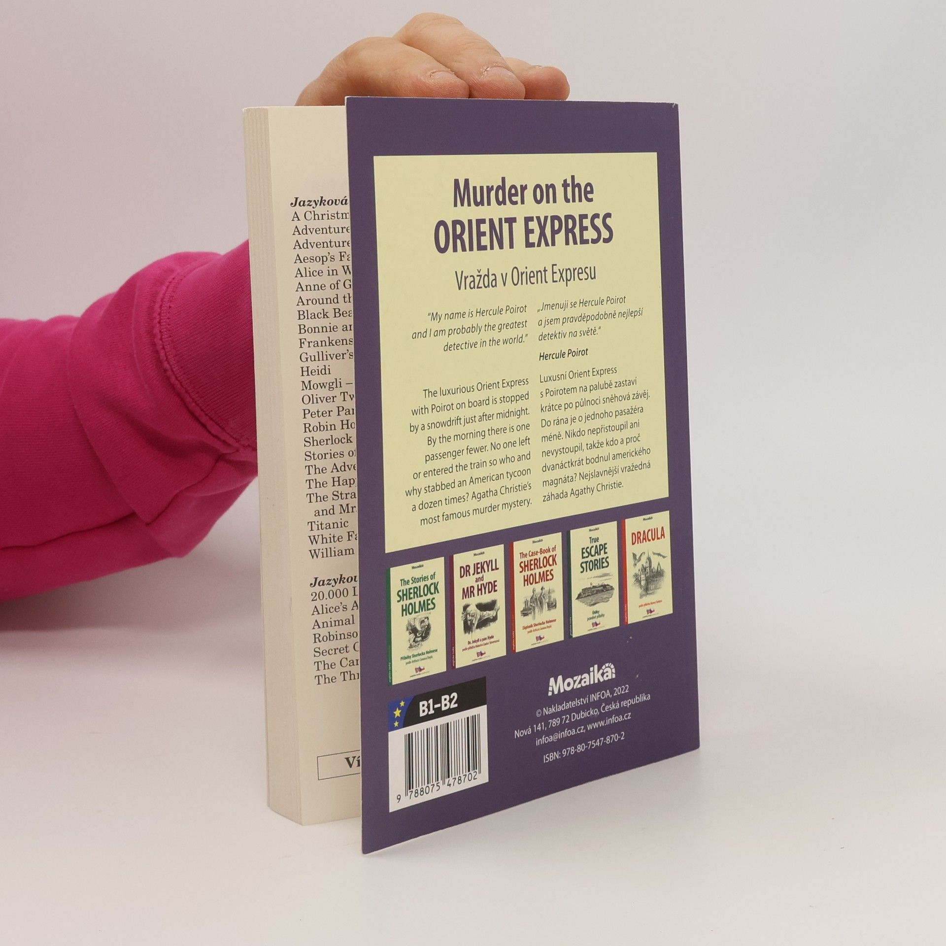 B1-B2 anglicko-český zrcadlový text Luxusní Orient Express s Poirotem na palubě zastaví krátce po půlnoci sněhová závěj. Do rána je o jednoho pasažéra méně. Nikdo nepřistoupil ani nevystoupil, takže kdo a proč dvanáctkrát bodnul amerického magnáta? Nejslavnější vražedná záhada Agathy Christie.