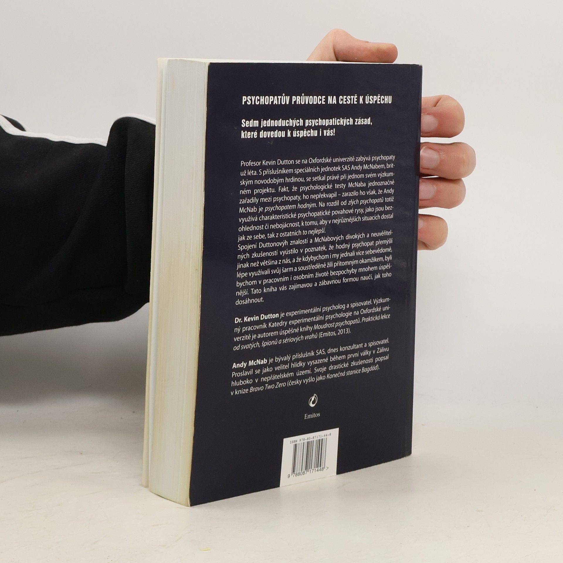 Profesor Kevin Dutton se na Oxfordské univerzitě zabývá psychopaty už léta. S příslušníkem speciálních jednotek SAS Andy McNabem, britským novodobým hrdinou, se setkal právě při jednom svém výzkumném projektu. Fakt, že psychologické testy McNaba jednoznačně zařadily mezi psychopaty, ho nepřekvapil – zarazilo ho však, že Andy McNab je psychopatem hodným. Na rozdíl od zlých psychopatů totiž využívá charakteristické psychopatické povahové rysy, jako jsou bezohlednost či odvaha, k tomu, aby v nejrůznějších situacích dostal jak ze sebe, tak z ostatních to nejlepší. Spojení McNabových divokých a neuvěřitelných zkušeností a Duttonových znalostí vyústilo v poznatek, že hodný psychopat přemýšlí jinak než většina z nás, a že kdybychom i my dokázali prohloubit a lépe využívat vlastnosti jako šarm, chladnokrevnost, sebevědomí nebo odvahu, byli bychom v pracovním i osobním životě bezpochyby mnohem úspěšnější. V této knize se zajímavou a zábavnou formou naučíte, jak toho dosáhnout.
