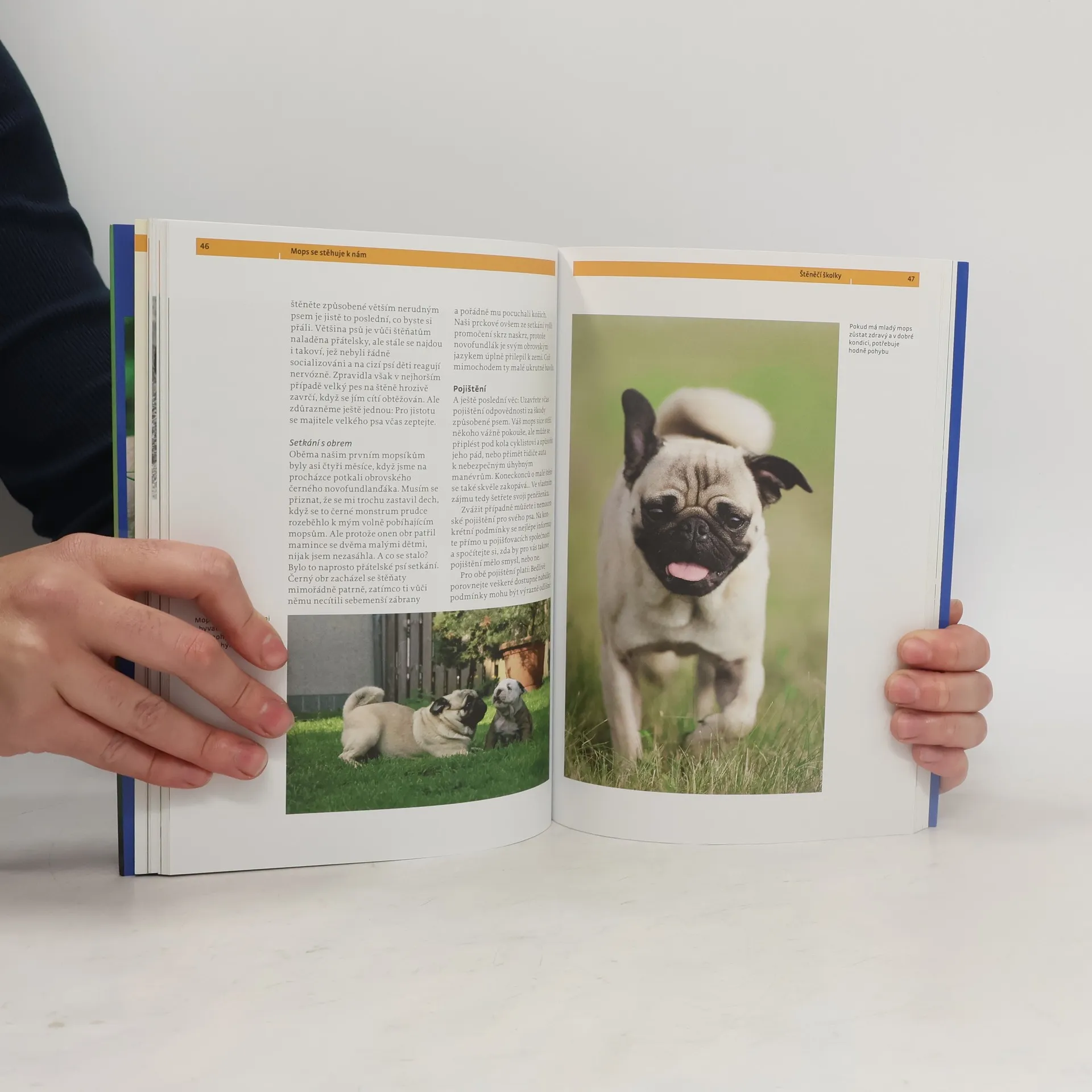 Široký hřbet, krátké nohy, zakroucený „prasečí“ ocásek a zvrásněná tvář: to je mops. Jeho skutečnou krásu často poznáte teprve na druhý pohled, protože to je především jeho vyrovnaná povaha, veselé způsoby a přítulnost, co z něj dělá tak oblíbeného partnera. Žádný byt mu není příliš malý, žádná rodina příliš velká; neloví, nepere se a je stejně pohodlný nebo naopak sportovní jako jeho majitel. Zkrátka skutečný přítel, který vás bude doprovázet na každém kroku.