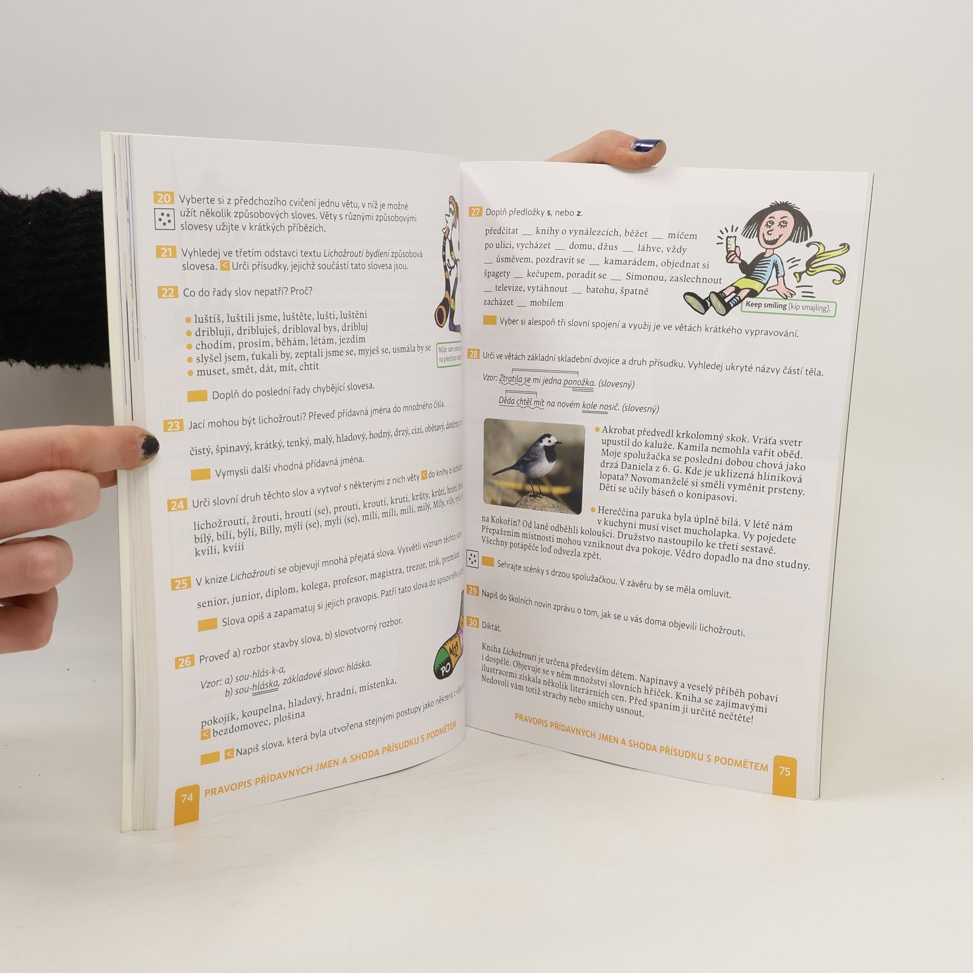Učebnice zahrnuje učivo jazykové, komunikační i slohové. Obvyklou strukturu kapitoly v učebnici tvoří souvislý výchozí text, část k zprostředkování nového učiva a úlohy nejrůznějšího typu. Zařazeny jsou i problémové úlohy a jako ukázka i rejstřík lingvistických termínů, s nimiž se žáci v učebnici seznámili. Novinkou jsou barevné rámečky, v nichž najdete mezipředmětové vztahy, aktivity či vysvětlující texty.