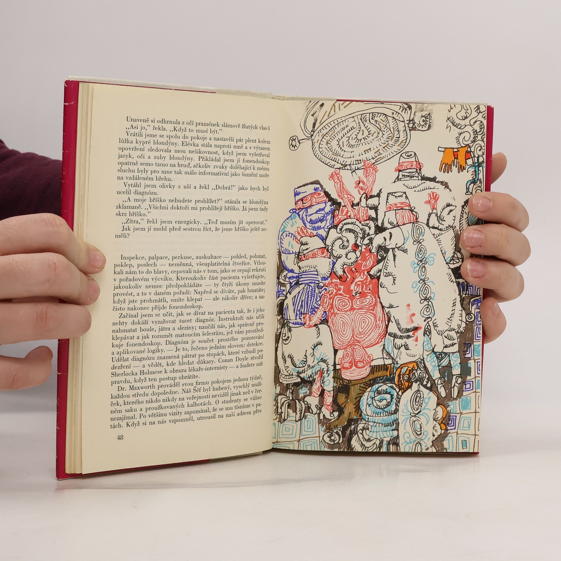 Humoristický román ze života anglických mediků, jehož autorem je lékař, redaktor, jeden z nejznámějších spisovatelů, kteří dnes v Anglii pokračují v slavné tradici humoru a satiry. Děj románu (který zná český čtenář jen z filmového přepisu), v němž vystupuje autor pod svým vlastnímjménem, představuje sbírku anekdotických příběhů o studentech medicíny, jejich profesorech, o sestrách a také o pacientech. Kniha připomíná ovzduší naší Alarichovy Medicíny v županu, avšak je v ní zachycen typický anglický humor s jeho zákonitostmi. Část nákladu brož.
