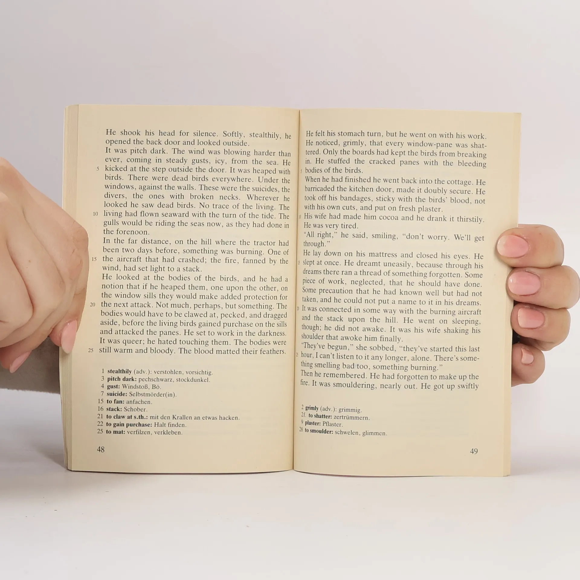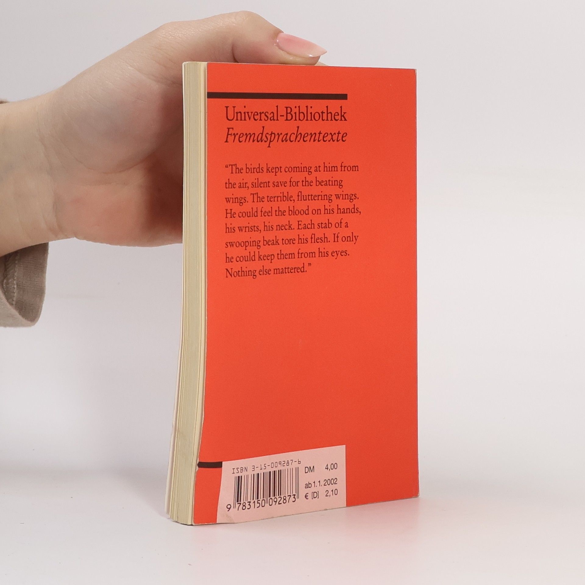 Der Horror, den die Vögel in dem kleinen Küstenort Bodega Bay verbreiten, ist seit Hitchcocks Verfilmung jedem Leser gegenwärtig. Aber natürlich ist da auch noch das Drama zwischen Mitch, Melanie und Anne. Und die Frage des Überlebens bleibt offen. Ungekürzte und unbearbeitete Textausgabe in der Originalsprache, mit Übersetzungen schwieriger Wörter am Fuß jeder Seite, Nachwort und Literaturhinweisen.