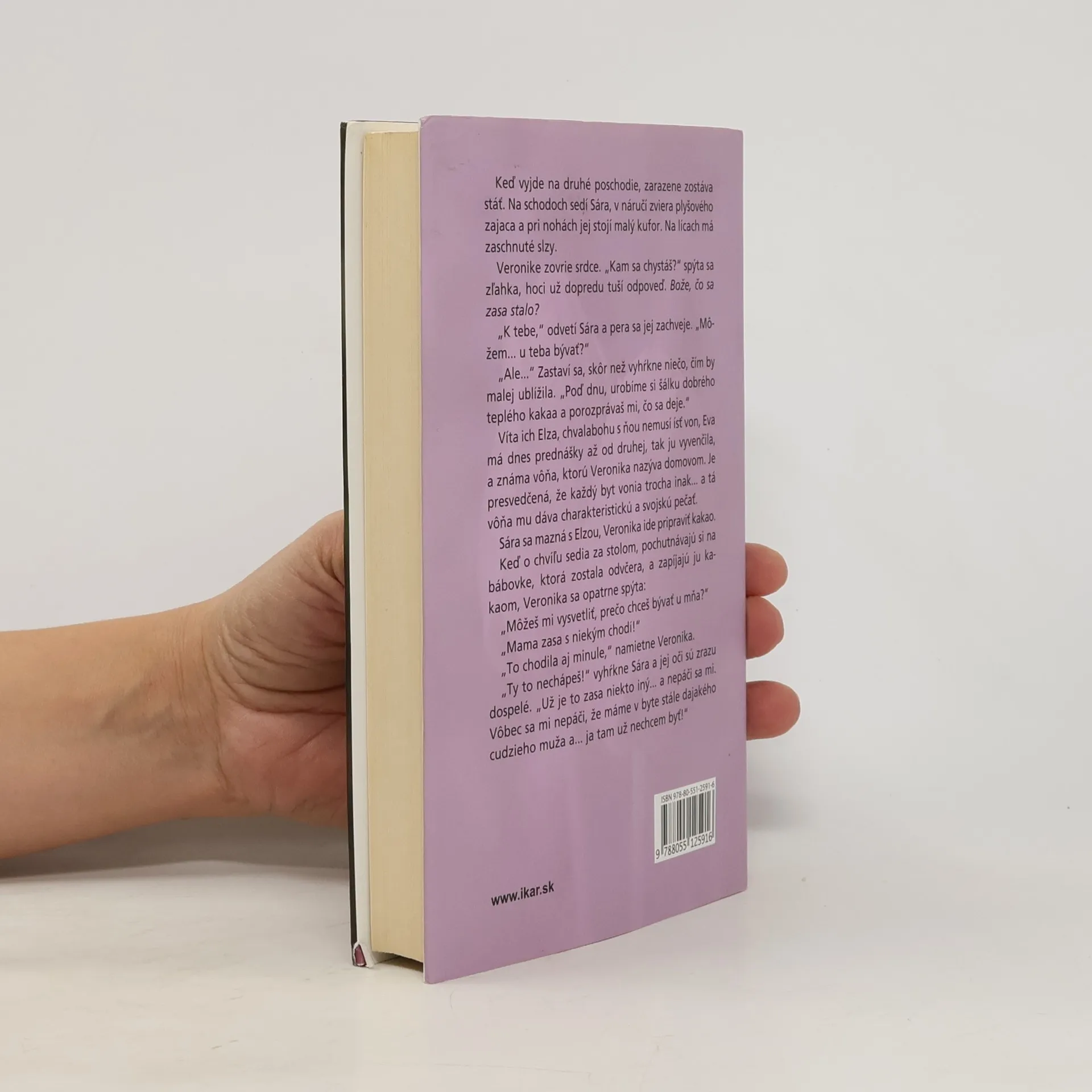 Najnovší autorkin román rozpráva príbeh dvoch žien, priateliek. Anna, prekladateľka, žije s manželom a dvomi dcérkami a na prvý pohľad jej nič nechýba. V skutočnosti je to však trocha inak... Veronika, učiteľka, žije s devätnásťročnou dcérou a vôbec ju netrápi, že v jej živote nie je nijaký muž. Život je však plný prekvapení...