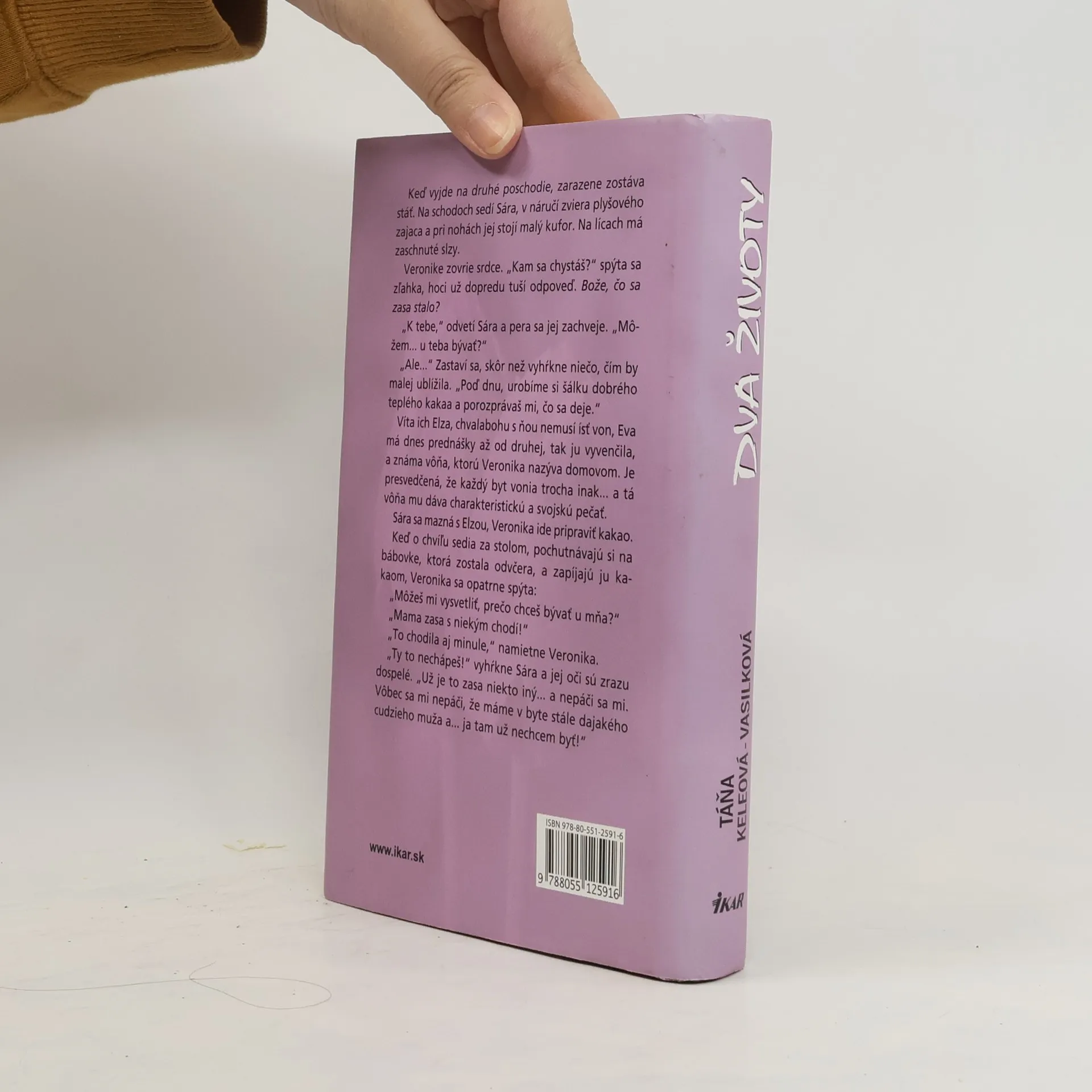 Najnovší autorkin román rozpráva príbeh dvoch žien, priateliek. Anna, prekladateľka, žije s manželom a dvomi dcérkami a na prvý pohľad jej nič nechýba. V skutočnosti je to však trocha inak... Veronika, učiteľka, žije s devätnásťročnou dcérou a vôbec ju netrápi, že v jej živote nie je nijaký muž. Život je však plný prekvapení...