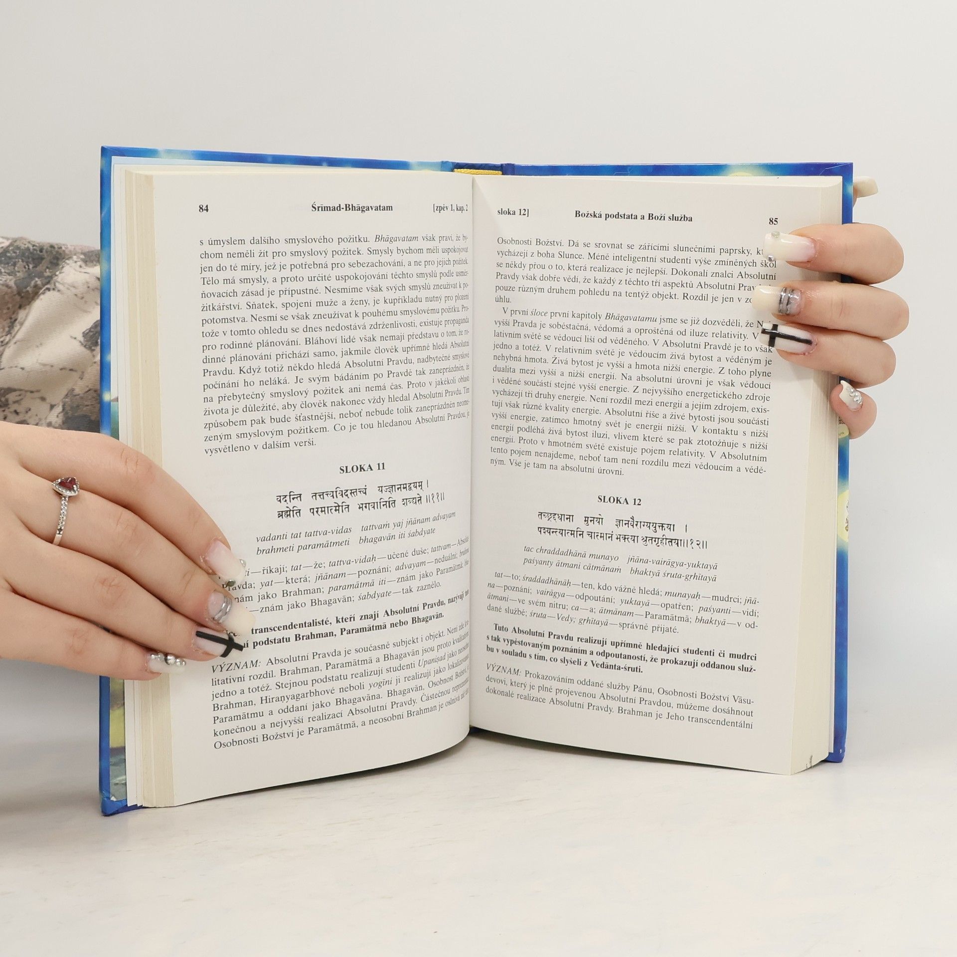 Nábožensko-filozofický text, který dává nahlédnout do indického duchovního odkazu. S původními sanskrtskými texty, přepisem do latinského písma, českými synonymy, překlady a podrobnými výklady.