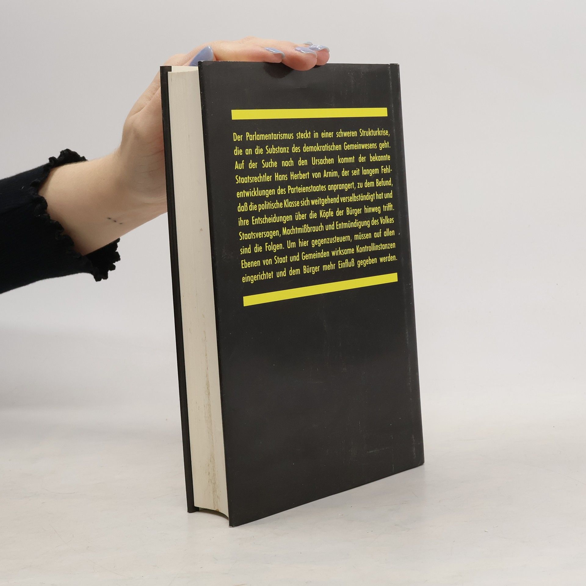 Der Parlamentarismus steckt in einer schweren Strukturkrise, die an die Substanz des demokratischen Gemeinwesens geht. Auf der Suche nach den Ursachen kommt der Staatsrechtler Hans Herbert von Arnim zu dem Befund, daß die politische Klasse sich weitgehend verselbständigt hat und ihre Entscheidungen über die Köpfe der Bürger hinweg trifft. Staatsversagen, Machtmißbrauch und Entmündigung des Volkes sind die Folgen. Um hier gegenzusteuern, müssen auf allen Ebenen von Staat und Gemeinden wirksame Kontrollinstanzen eingerichtet und dem Bürger mehr Einfluß gegeben werden.