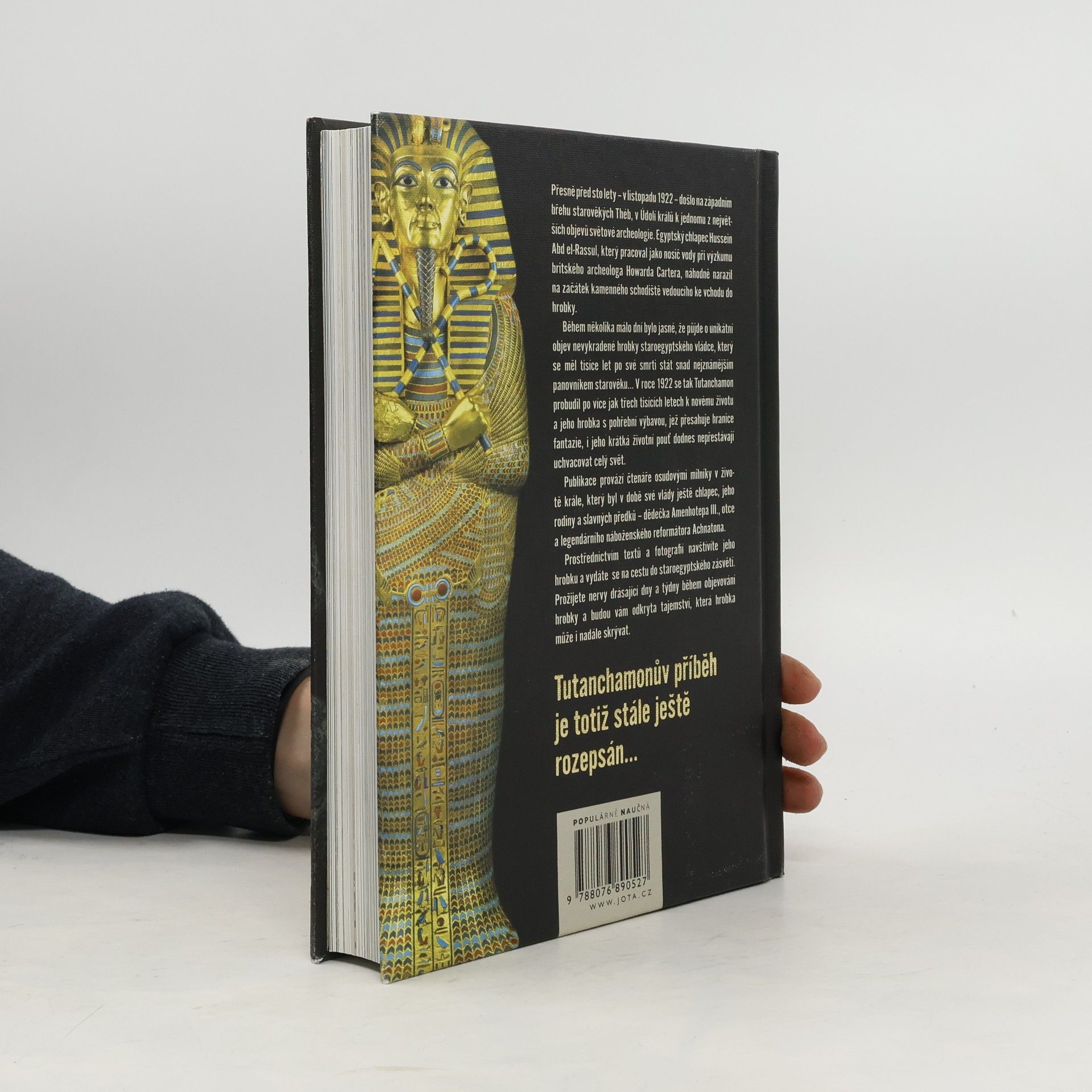 Přesně před sto lety – v listopadu 1922 – došlo na západním břehu starověkých Théb, v Údolí králů k jednomu z největších objevů světové archeologie. Egyptský chlapec Hussein Abd el-Rassul, který pracoval jako nosič vody při výzkumu britského archeologa Howarda Cartera, náhodně narazil na začátek kamenného schodiště vedoucího ke vchodu do hrobky. Během několika málo dní bylo jasné, že půjde o unikátní objev nevykradené hrobky staroegyptského vládce, který se měl tisíce let po své smrti stát snad nejznámějším panovníkem starověku… V roce 1922 se tak Tutanchamon probudil po více jak třech tisících letech k novému životu a jeho hrobka s pohřební výbavou, jež přesahuje hranice fantazie, i jeho krátká životní pouť dodnes nepřestávají uchvacovat celý svět. Publikace provází čtenáře osudovými milníky v životě krále, který byl v době své vlády ještě chlapec, jeho rodiny a slavných předků – dědečka Amenhotepa III., otce a legendárního náboženského reformátora Achnatona. Prostřednictvím textů a fotografií navštívíte jeho hrobku a vydáte se na cestu do staroegyptského zásvětí. Prožijete nervy drásající dny a týdny během objevování hrobky a budou vám odkryta tajemství, která hrobka může i nadále skrývat. Tutanchamonův příběh je totiž stále ještě rozepsán…