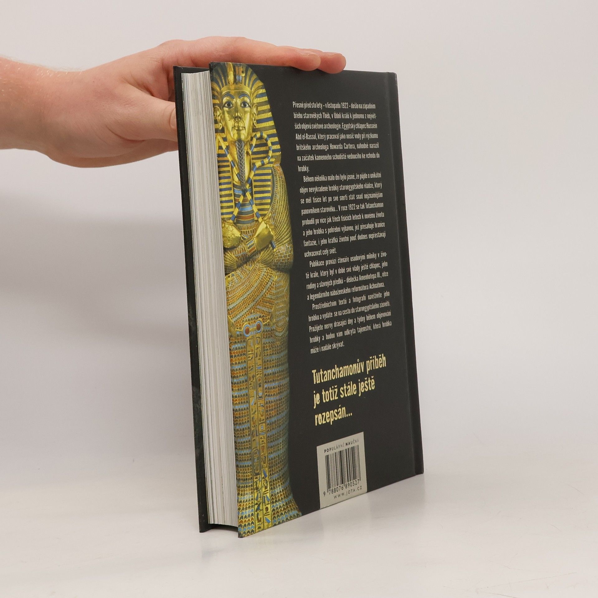 Přesně před sto lety – v listopadu 1922 – došlo na západním břehu starověkých Théb, v Údolí králů k jednomu z největších objevů světové archeologie. Egyptský chlapec Hussein Abd el-Rassul, který pracoval jako nosič vody při výzkumu britského archeologa Howarda Cartera, náhodně narazil na začátek kamenného schodiště vedoucího ke vchodu do hrobky. Během několika málo dní bylo jasné, že půjde o unikátní objev nevykradené hrobky staroegyptského vládce, který se měl tisíce let po své smrti stát snad nejznámějším panovníkem starověku… V roce 1922 se tak Tutanchamon probudil po více jak třech tisících letech k novému životu a jeho hrobka s pohřební výbavou, jež přesahuje hranice fantazie, i jeho krátká životní pouť dodnes nepřestávají uchvacovat celý svět. Publikace provází čtenáře osudovými milníky v životě krále, který byl v době své vlády ještě chlapec, jeho rodiny a slavných předků – dědečka Amenhotepa III., otce a legendárního náboženského reformátora Achnatona. Prostřednictvím textů a fotografií navštívíte jeho hrobku a vydáte se na cestu do staroegyptského zásvětí. Prožijete nervy drásající dny a týdny během objevování hrobky a budou vám odkryta tajemství, která hrobka může i nadále skrývat. Tutanchamonův příběh je totiž stále ještě rozepsán…