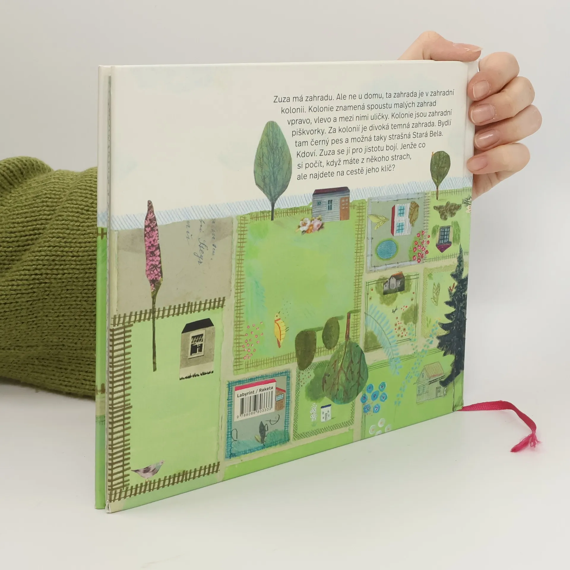 Zuza má zahradu. Ale ne u domu, ta zahrada je v zahradní kolonii. Kolonie znamená spoustu malých zahrad vpravo, vlevo a mezi nimi uličky. Kolonie jsou zahradní piškvorky. Za kolonií je divoká temná zahrada. Bydlí tam černý pes a možná taky strašná Stará Bela. Kdoví. Zuza se jí pro jistotu bojí. Jenže co si počít, když máte z někoho strach, ale najdete na cestě jeho klíč? Poetické vyprávění o překonávání strachu i předsudků a o půvabu odlišností. Úsporný text do barevné šíře rozehrávají fantastické ilustrace.