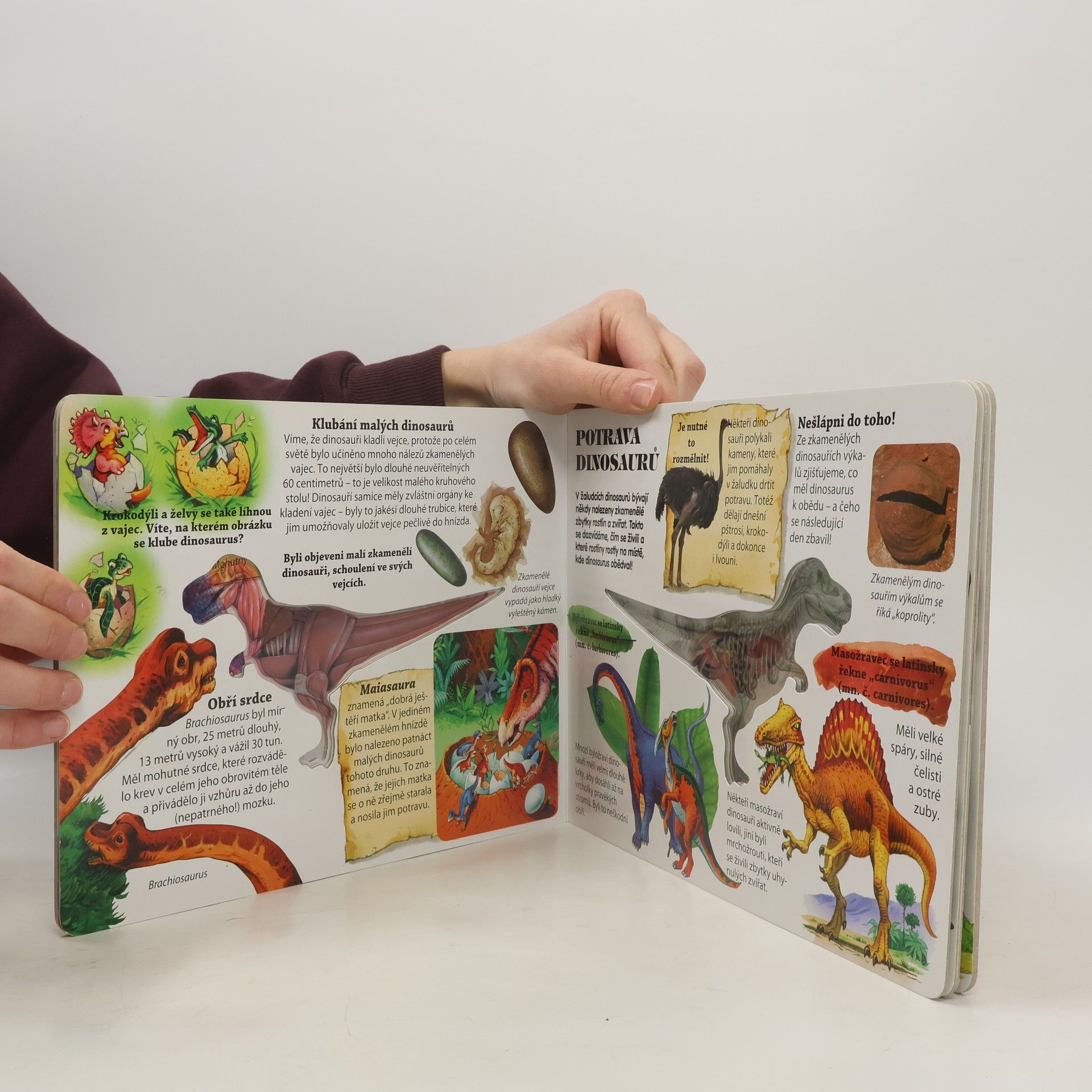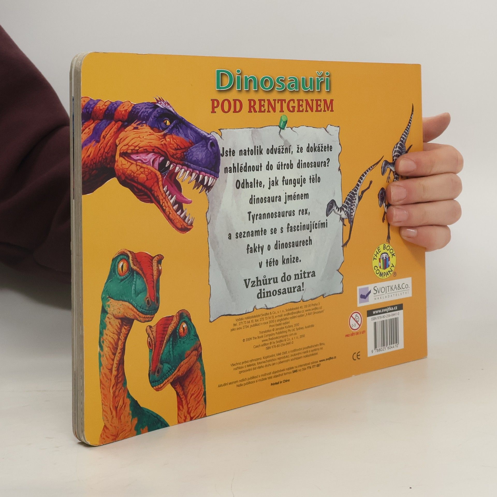 Jste natolik odvážní, že dokážete nahlédnout do útrob dinosaura? Odhalte, jak funguje tělo dinosaura jménem Tyrannosaurus rex, a seznamte se s fascinujícími fakty o dinosaurech v této knize, obsahující i jejich „rentgenové“ snímky. Vzhůru do nitra dinosaura! Knížka pro mladší děti o stavbě a fungování těla dinosaurů, jejich druzích i zajímavostech z jejich života. Leporelo doplněné barevnými průsvitkami jednotlivých soustav (kostra, svaly, trávicí soustava, srdce a cévy). Stručné informace o dinosaurech doprovází kromě průsvitek spousta barevných ilustrací, které mají dětem názorně přiblížit některé skutečnosti i zajímavosti