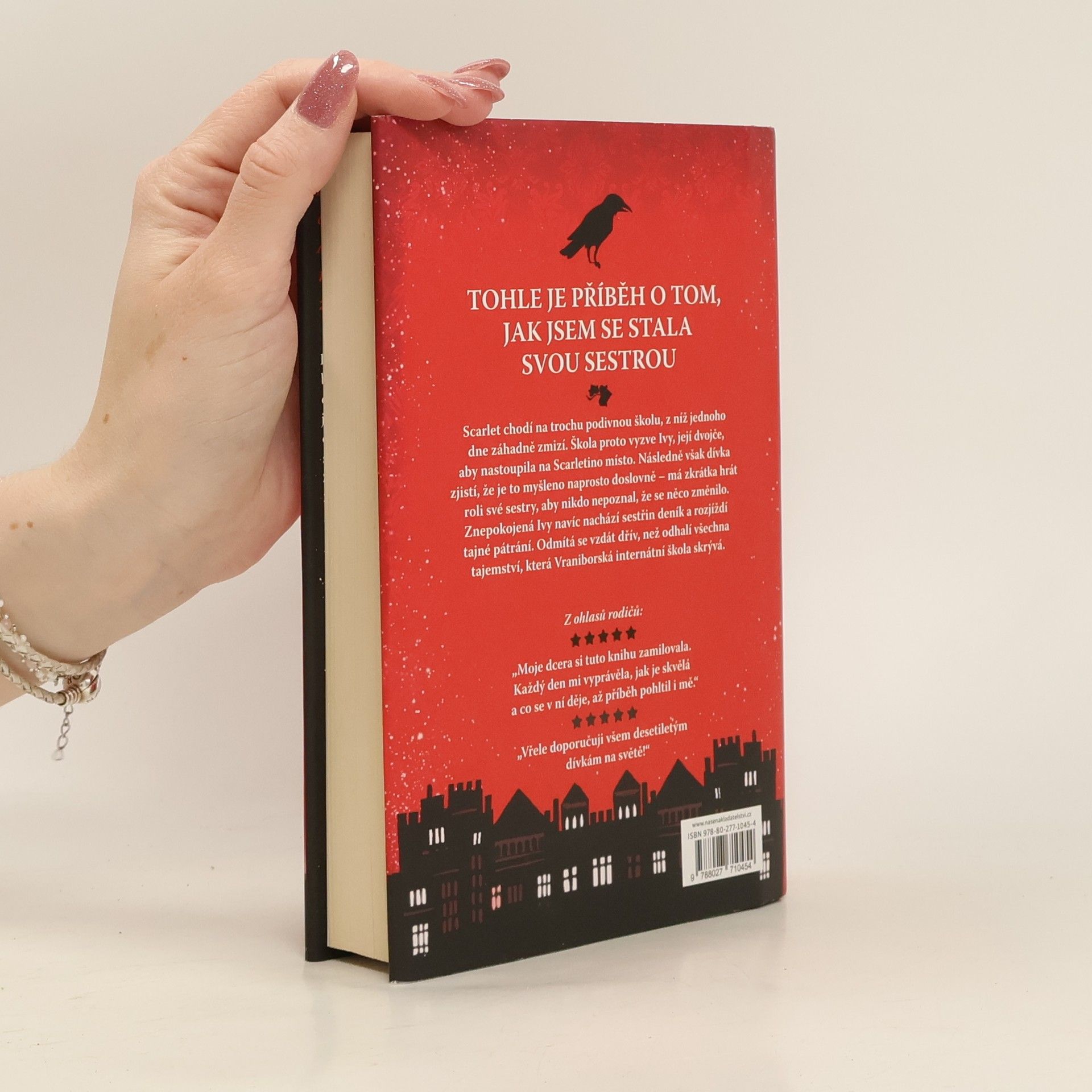 Ivy, modlím se, abys tohle četla ty. A pokud to tak je, no, přepokládám, že jsi teď mým novým já… Když problémová Scarlet zmizí z Vraniborské internátní školy, Ivy, její nesmělé dvojče, je vyzvána, aby „nastoupila na její místo“. Jakmile ale dorazí, dozví se, o co škole doopravdy jde – musí předstírat, že je Scarlet. Musí myslet jako Scarlet, chovat se jako Scarlet, stát se Scarlet. Ale co se stalo se skutečnou Scarlet? A proč se to škola snaží utajit? Naštěstí pro Ivy, Scarlet nehodlá zmizet bez boje. Po celé škole nechala pečlivě schované stránky svého deníku a Ivy je teď musí najít. Zjistí, co se se Scarlet stalo. Musí to zjistit. Ale zaměstnanci Vraniboru ji neustále sledují a udělají cokoliv, aby jejich tajemství zůstala pohřbena navždy…