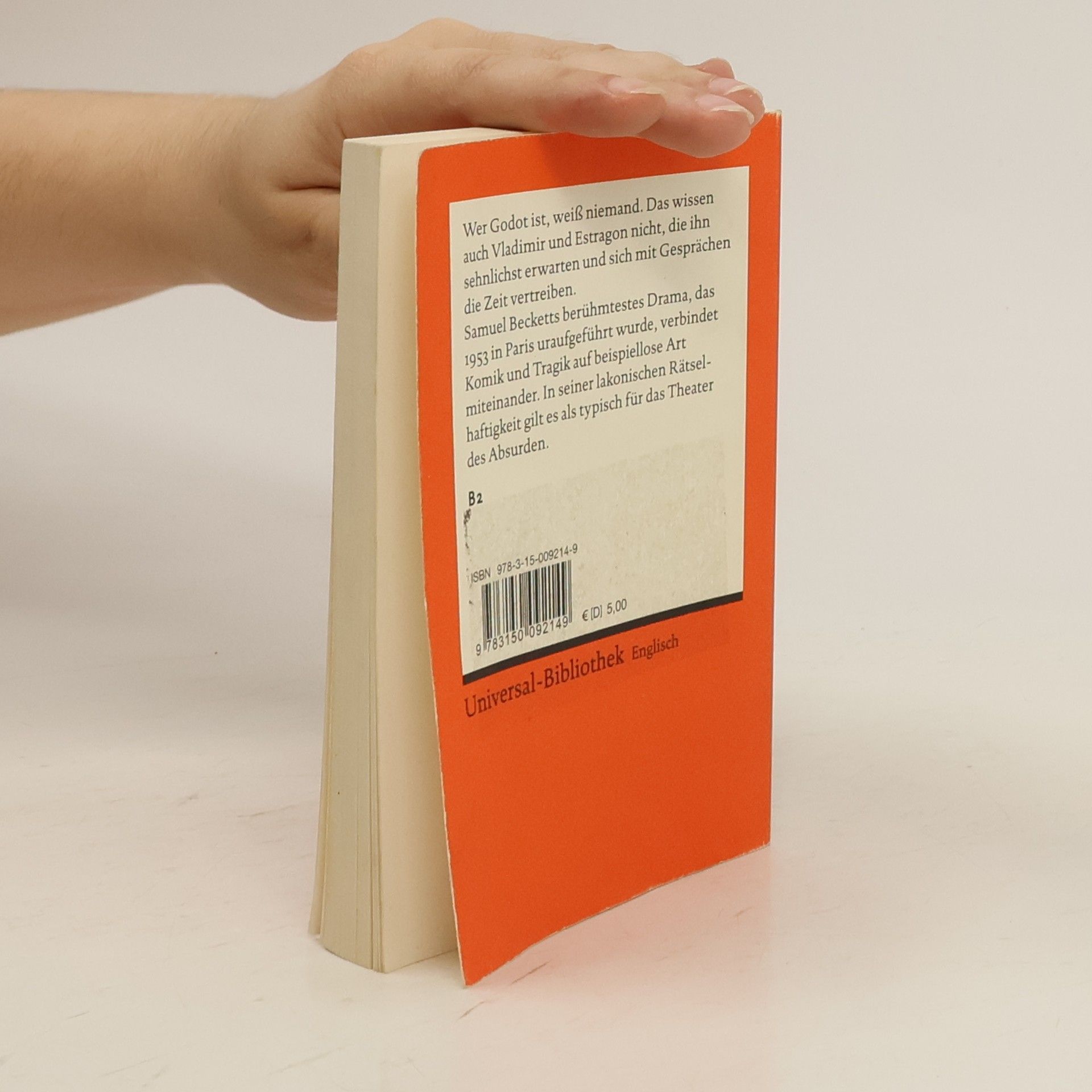 Englische Literatur in Reclams Roter Reihe: das ist der englische Originaltext – mit Worterklärungen am Fuß jeder Seite, Nachwort und Literaturhinweisen. Wer Godot ist, weiß niemand. Das wissen auch Vladimir und Estragon nicht, die ihn sehnlichst erwarten und sich mit Gesprächen die Zeit vertreiben. Samuel Becketts berühmtestes Drama, das 1953 in Paris uraufgeführt wurde, verbindet Komik und Tragik auf beispiellose Art miteinander. In seiner lakonischen Rätselhaftigkeit gilt es als typisch für das Theater des Absurden. Englische Lektüre: Niveau B2 (GER) Sprachen: Englisch, Deutsch