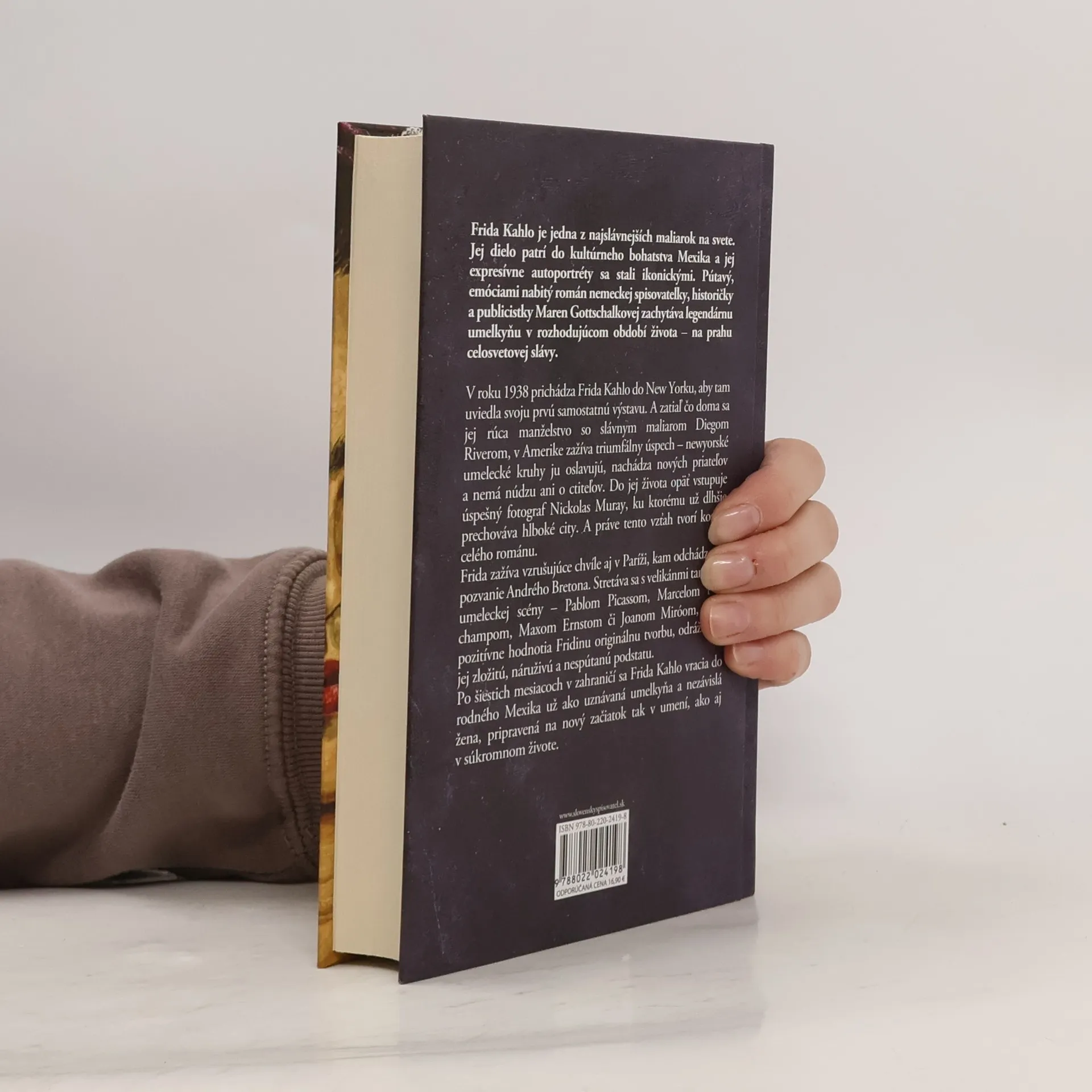 Frida Kahlo je jednou z najslávnejších maliarok na svete, a jej dielo patrí do kultúrneho bohatstva Mexika. Emóciami nabitý román nemeckej spisovateľky Maren Gottschalkovej zachytáva legendárnu umelkyňu v rozhodujúcom období jej života - na prahu celosvetovej slávy. V roku 1938 prichádza Frida do New Yorku na svoju prvú samostatnú výstavu. Zatiaľ čo doma sa jej rúca manželstvo so slávnym maliarom Diegom Riverom, v Amerike zažíva úspech – newyorské umelecké kruhy ju oslavujú, nachádza nových priateľov a ctiteľov. Do jej života opäť vstupuje fotograf Nickolas Muray, ku ktorému prechováva hlboké city. Tento vzťah tvorí kostru románu. Frida zažíva vzrušujúce chvíle aj v Paríži, kde sa stretáva s velikánmi umeleckej scény, ktorí pozitívne hodnotia jej originálnu tvorbu. Po šiestich mesiacoch sa vracia do Mexika ako uznávaná umelkyňa a nezávislá žena, pripravená na nový začiatok. Gottschalková zručne spája fakty a fikciu, čím vytvára pútavý portrét umelkyne a ženy. Román je nádhernou oslavou umenia, lásky a života, pričom čitateľ má možnosť sledovať vznik slávnych autoportrétov takmer v reálnom čase. Fridin život, poznačený sklamaniami a bolesťou, ukazuje jej neochvejnú schopnosť milovať a žiť.