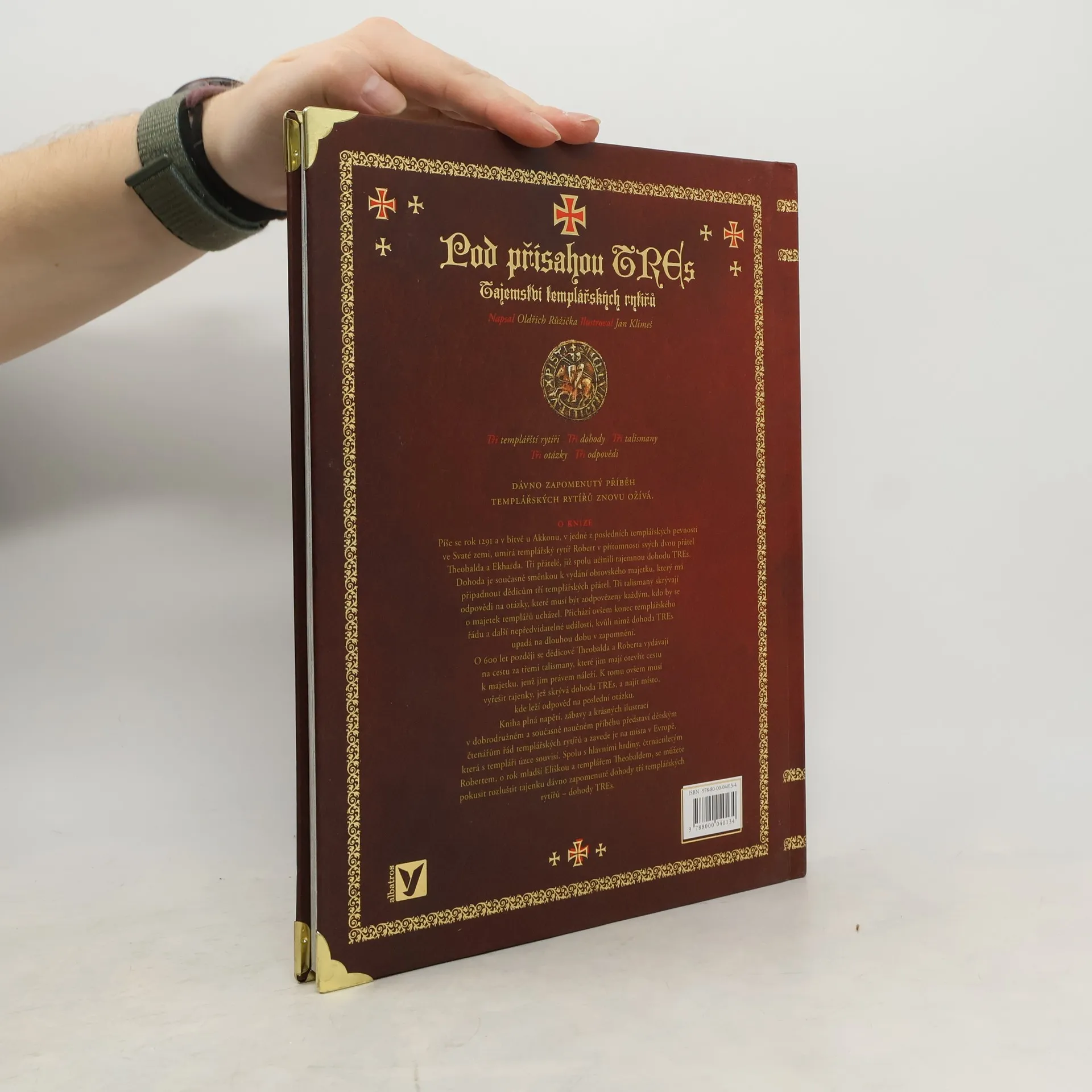 Píše se rok 1291 a v bitvě u Akkonu, v jedné z posledních templářských pevností ve Svaté zemi, umírá v přítomnosti svých dvou přátel Theobalda a Ekharda templářský rytíř Robert. Tito druhové spolu učinili tajemnou dohodu TREs, která je současně směnkou k vydání obrovského majetku. Odpovědi na otázky, které musí být zodpovězeny každým, kdo by se o majetek ucházel, ukryli do tří talismanů. Přichází ovšem konec templářského řádu a další nepředvídatelné události, kvůli nimž dohoda TREs upadá na dlouhou dobu v zapomnění. O 600 let později se dědicové Theobalda a Roberta vydávají na pouť, která jim má otevřít cestu k majetku, jenž jim právem náleží. K tomu ovšem musí vyřešit tajenky, jež skrývá dohoda TREs, a najít místo, kde leží odpověď na poslední otázku… Tajemství templářských rytířů Kniha plná napětí, zábavy a krásných ilustrací v dobrodružném a současně naučném příběhu představí dětským čtenářům řád templářských rytířů a zavede je na místa v Evropě, která s templáři úzce souvisí. Spolu s hlavními hrdiny, čtrnáctiletým Robertem, o rok mladší Eliškou a templářem Theobaldem, se můžete pokusit rozluštit tajenku dávno zapomenuté dohody tří templářských rytířů - dohody TREs.