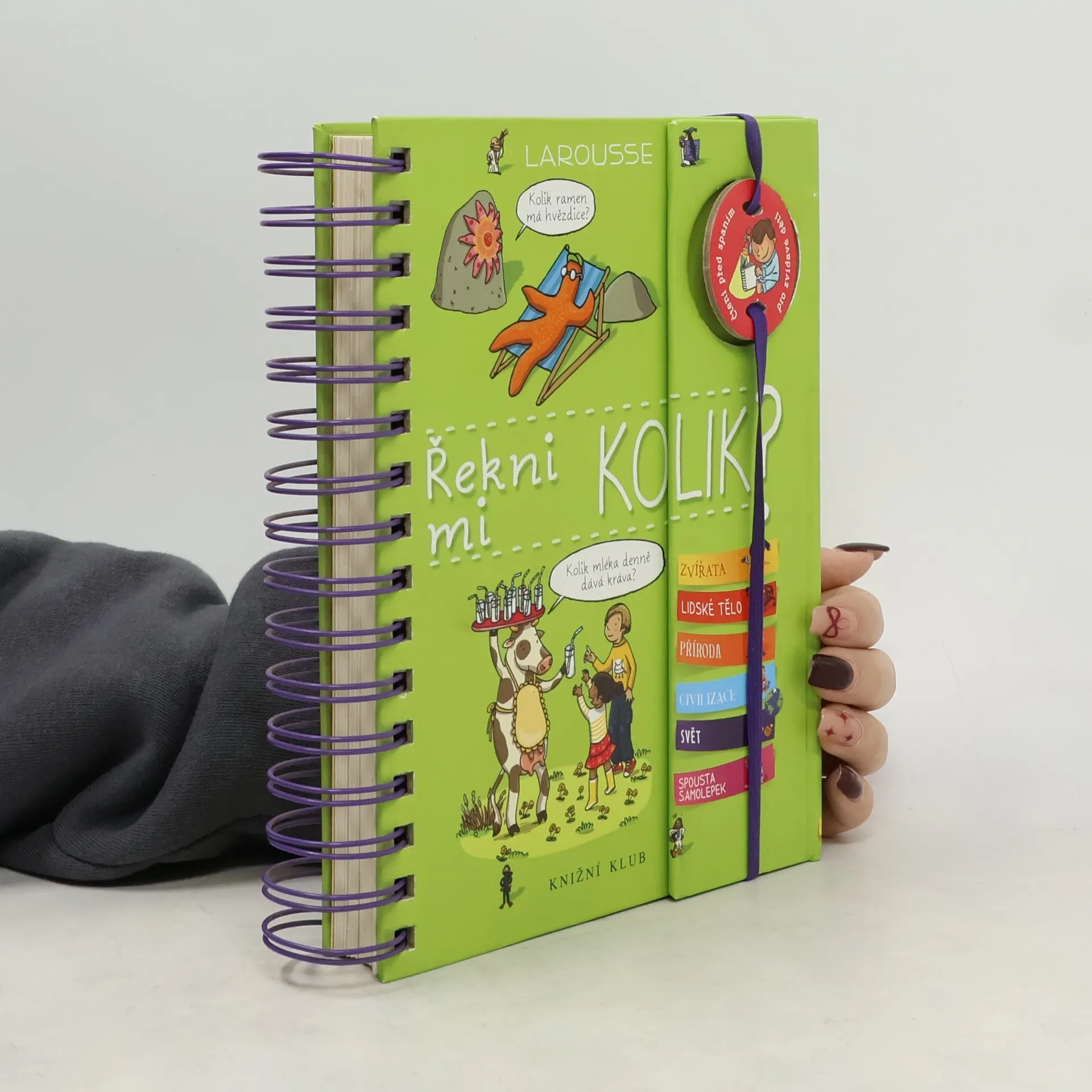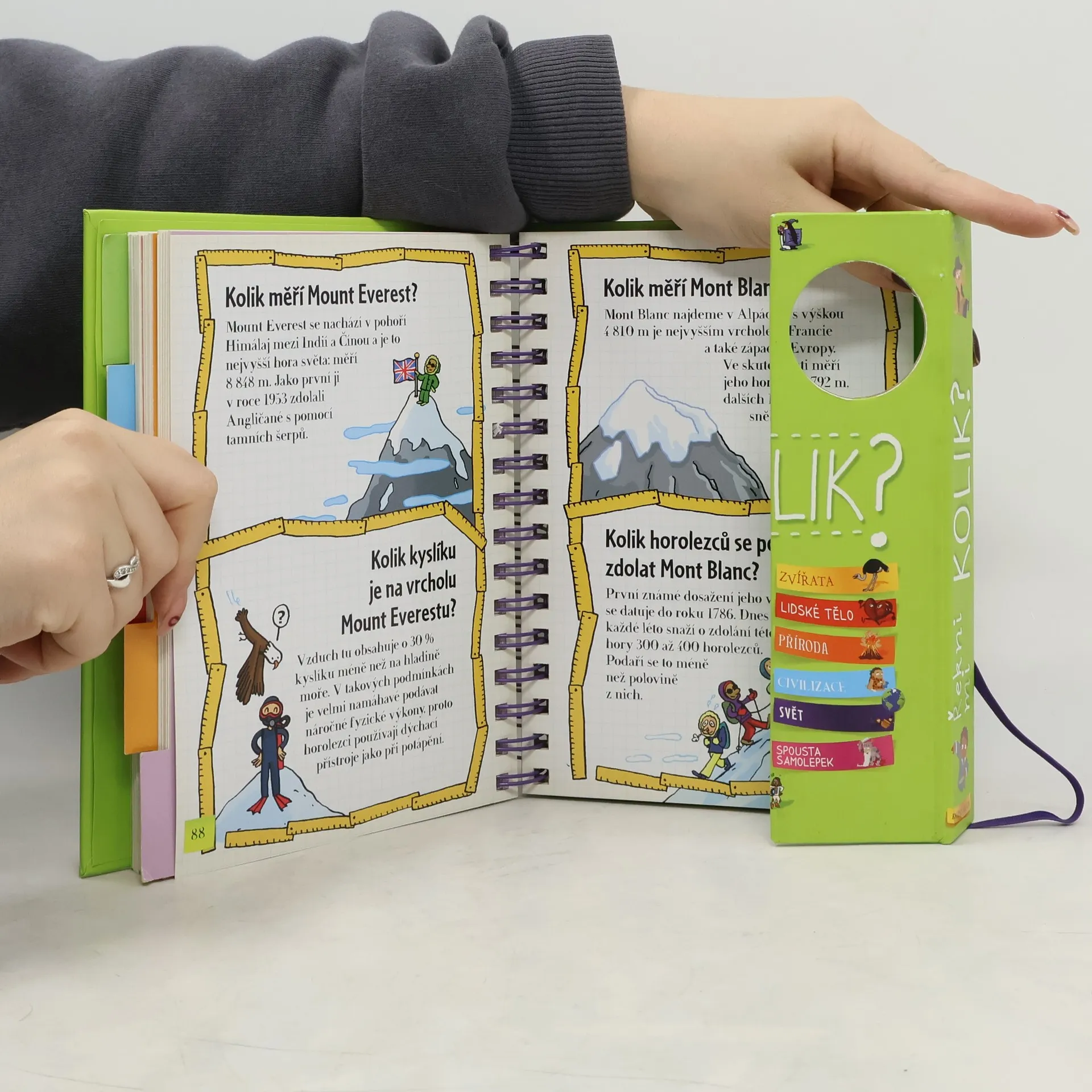 Další ze série oblíbených encyklopedií pro zvídavé děti odpovídá na 212 všetečných otázek – tentokrát na téma „kolik čeho je“. Kolik máme zubů? Kolik let je Země na světě? Kolik teček má beruška na krovkách? Otázky i odpovědi jsou rozdělené na pět oblastí: zvířata, lidské tělo, přírodní svět, civilizace a Země. V knížce s praktickou spirálovou vazbou jako obvykle nechybí ani samolepky a půvabné ilustrace.