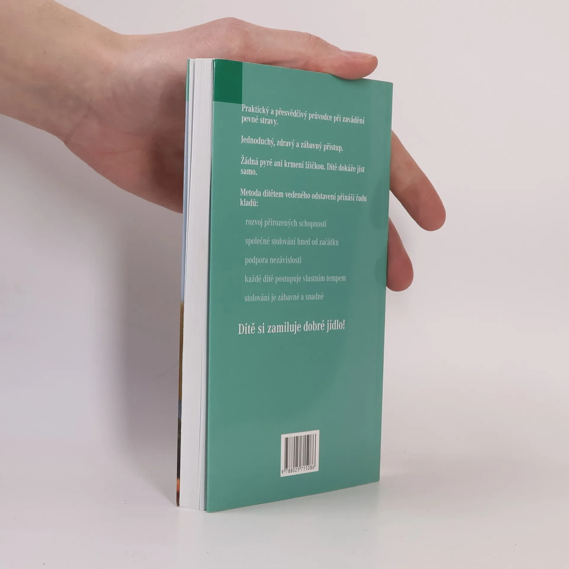 K českému čtenáři se konečně dostává kniha o „baby-led weaning“ (BLW), tedy o zřejmě nejpřirozenějším způsobu zavádění pevné stravy u kojenců, kdy celý proces řídí samo dítě- účastní se rodinného stolování, samo se krmí a samo si vybírá, co bude jíst. Díky tomu se rozvíjejí přirozené dovednosti a schopnosti dítěte, koordinace ruka-oko, jemná motorika, samostatnost… Není potřeba vařit žádná pyré, kašičky nebo přesnídávky. Jídlo je zábava a jídelní stůl se nemění v bojiště, jak tomu často bývá při klasickém krmení lžičkou. Autorky- odbornice na stravování malých dětí a novinářka- v knize popisují celý proces „dítětem vedeného odstavení“, radí kdy, jak a s čím začít, ale i na co dávat pozor a čemu se vyhnout. Především však čtenářům poradí, jak dítěti pomoci k tomu, aby si zamilovalo dobré jídlo.
