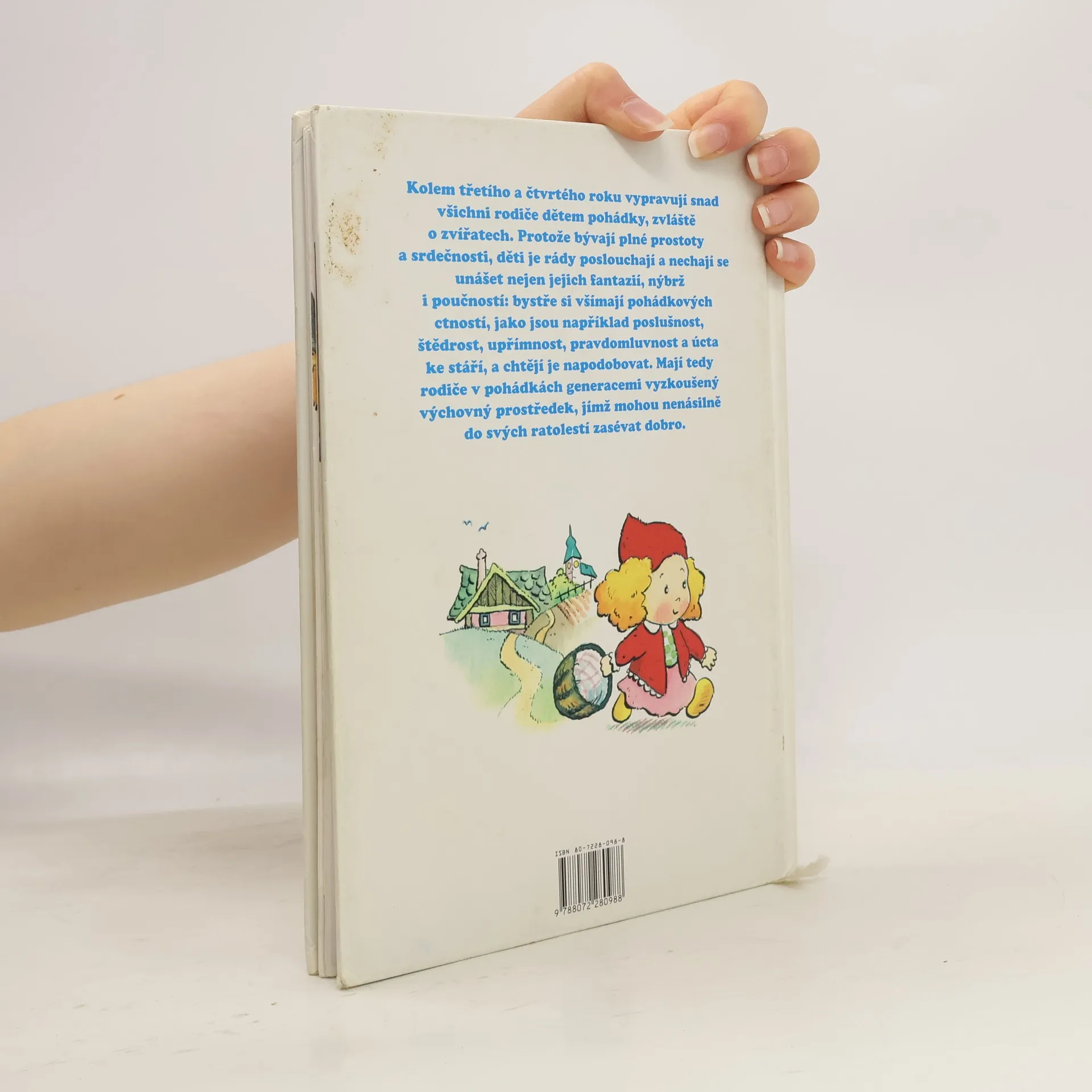 Kolem třetího a čtvrtého roku vypravují snad všichni rodiče dětem pohádky, zvláště o zvířatech. Protože bývají plné prostoty a srdečnosti, ději je rády poslouchají a nechají se unášet nejen jejich fantazií, nýbrž i poučností: bystře si všímají pohádkových ctností, jako jsou například poslušnost, štědrost, upřímnost, pravdomluvnost a úcta ke stáří, a chtějí je napodobovat. Mají tedy rodiče v pohádkách generacemi vyzkušený výchovný prostředek, jímž mohou nenásilně do svých ratolestí zasévat dobro.