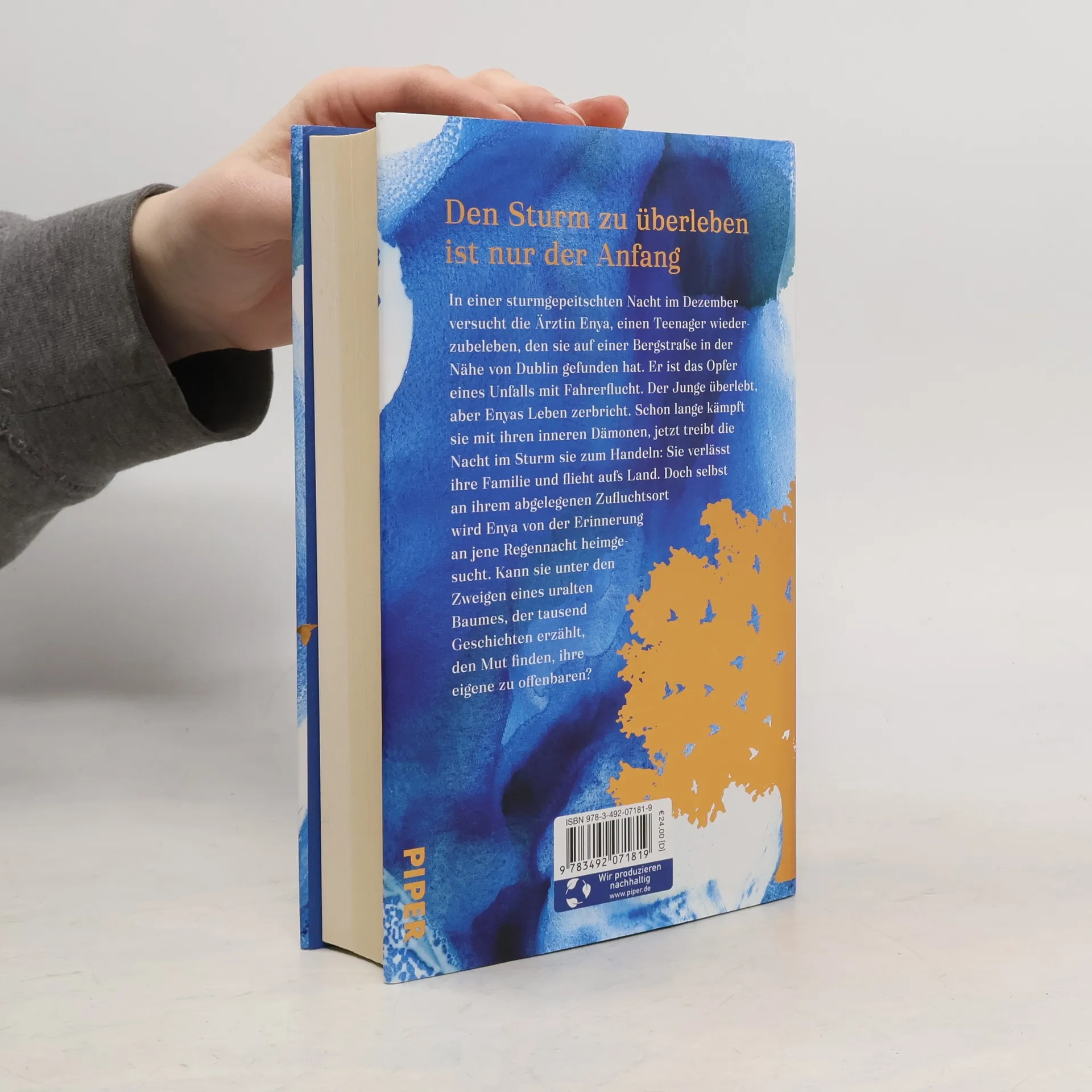 Den Sturm zu überleben ist nur der Anfang In einer verregneten Nacht im Dezember versucht die Ärztin Enya, einen Teenager wiederzubeleben, den sie auf einer Bergstraße in der Nähe von Dublin gefunden hat. Das Opfer einer Fahrerflucht. Der Junge überlebt, aber Enyas Leben zerbricht. Schon lange kämpft sie mit ihren inneren Dämonen, diese Nacht im Sturm treibt sie zum Handeln: Sie verlässt ihre Familie und flieht aufs Land. Doch selbst in ihrem abgelegenen Zufluchtsort wird Enya von der Regennacht heimgesucht. Kann sie unter den Zweigen eines uralten Baumes, der tausend Geschichten erzählt, den Mut finden, ihre eigene zu erzählen? Tiefgründig, voller Wärme und Klugheit erzählt Cecelia Ahern von einer Frau, die dem Aufruhr in ihrem Inneren zu entfliehen sucht – bis sie erkennt, dass sie dem Sturm nicht entgehen kann, sondern ihm mutig entgegengehen muss. Denn hinter dem Sturm wartet die Freiheit!