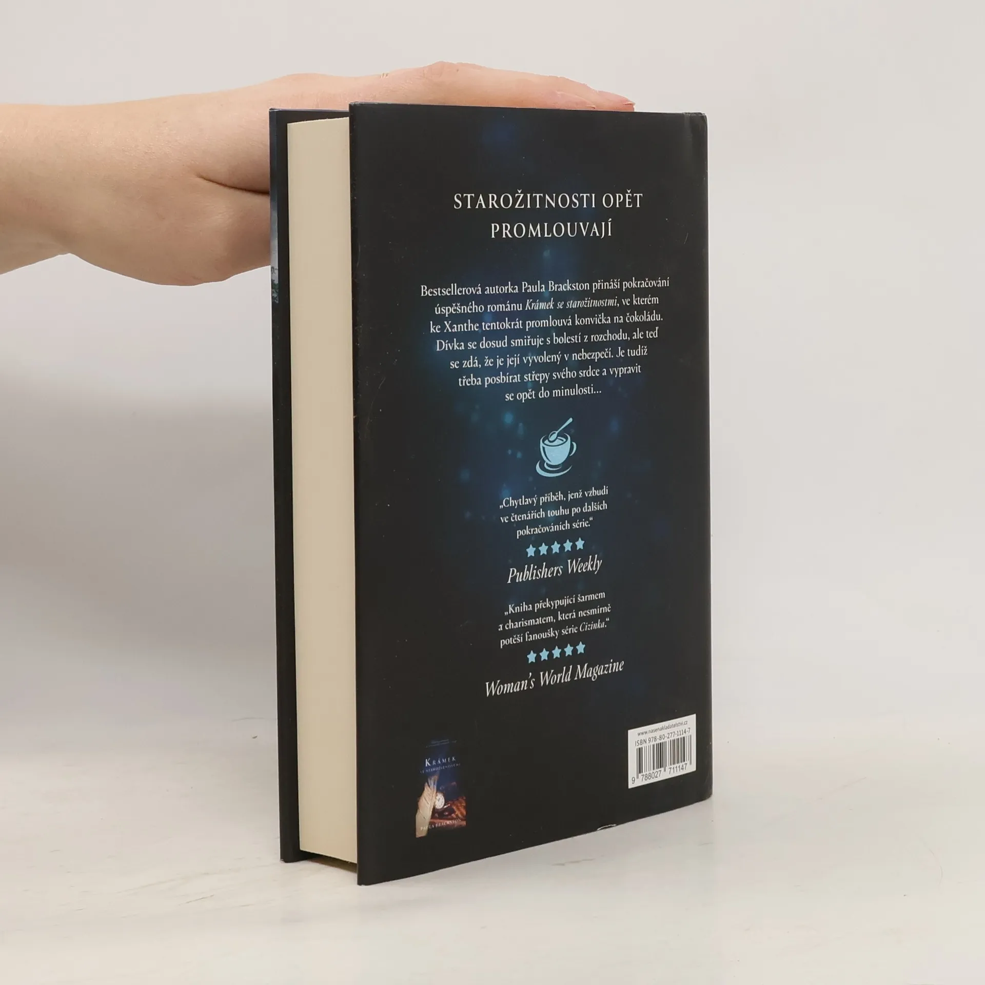 Paula Brackston přináší pokračování úspěšného románu Krámek se starožitnostmi. Po svých dobrodružstvích v sedmnáctém století se Xanthe pokouší žít zase běžný život v Marlborough. Není snadné zapomenout na Samuela, ale dělá vše pro to, aby přijala skutečnost, že spolu nemohou být, neboť každý patří do jiného století. Místo toho se soustředí na Floru a jejich společný obchod. Nelze však popřít její zvláštní spojení se starožitnostmi, které se jí svěřují s tajemstvími a chtějí po ní, aby cestovala časem a pomáhala lidem v nesnázích. Když k ní během hledání nového zboží začne zpívat konvička na čokoládu a vyvolá v Xanthe vizi, ve které je Samuel v nebezpečí, není možné jen tak nečinně sedět. Xanthe se navzdory rizikům rozhodne vydat na další cestu do minulosti, přestože to obnáší další lhaní matce a nejistotu, zda se bezpečně vrátí. Nejen, že se během svého dobrodružství setká s velmi silným protivníkem, ale také pochopí, jaký jí byl svěřen osud. Bude schopna vrátit se zpět? A bude schopna zachránit Samuela, když se sama ocitla v obrovském nebezpečí?