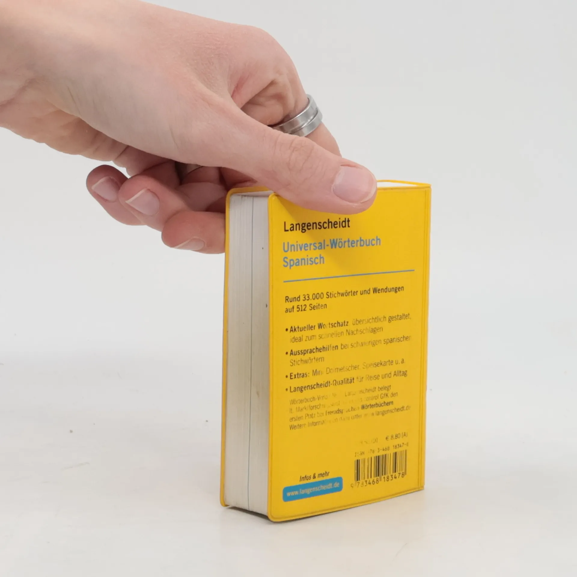 Das universelle Wörterbuch mit aktuellem Wortschatz im besonders praktischen Format. Rund 33.000 Stichwörter und Wendungen alle Haupteinträge in Blau für die schnelle Orientierung hilfreiche Extras im Anhang: Feiertage, Mini-Dolmetscher zu wichtigen Sprechsituationen auf der Reise, spanische Speisekarte u. a. zum schnellen Nachschlagen auf Reisen und für den fremdsprachlichen Anfangsunterricht