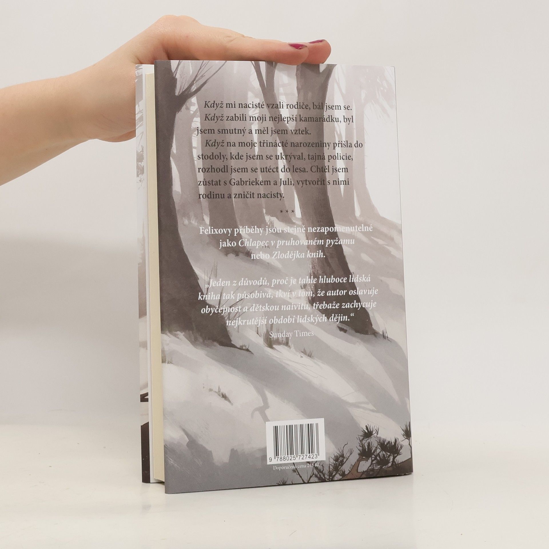 Píše se rok 1945. Felix se už dva roky schovává v jámě, aby jej nenašli nacisté, a laskavý muž jménem Gabriek mu v noci nosí jídlo a vynáší nočník. V den svých třináctých narozenin chlapec uslyší nad svým úkrytem hlasy a je přesvědčený, že si pro něj přišli. Ale hlasy nepatřily ani nacistům, ani tajné policii – patřily partyzánům. A tak se třináctiletý židovský sirotek stává členem partyzánského oddílu, který na polském území bojuje proti nacistům. Felix je přidělen jako pomocník k doktoru Zajakovi. Zůstává mezi neznámými drsnými chlapy a neustále musí dokazovat, že si zaslouží být partyzánem. Nemazlí se s ním ani sychravý zimní les, ani zběsilá atmosféra konce války. Je mu teprve třináct, ale zkušeností má víc než dospělý… Také třetí díl ze série o židovském chlapci Felixovi čelícímu hrůzám druhé světové války a holokaustu zprostředkuje dětem tuto dobu lépe než sebedelší výklady v hodinách dějepisu.