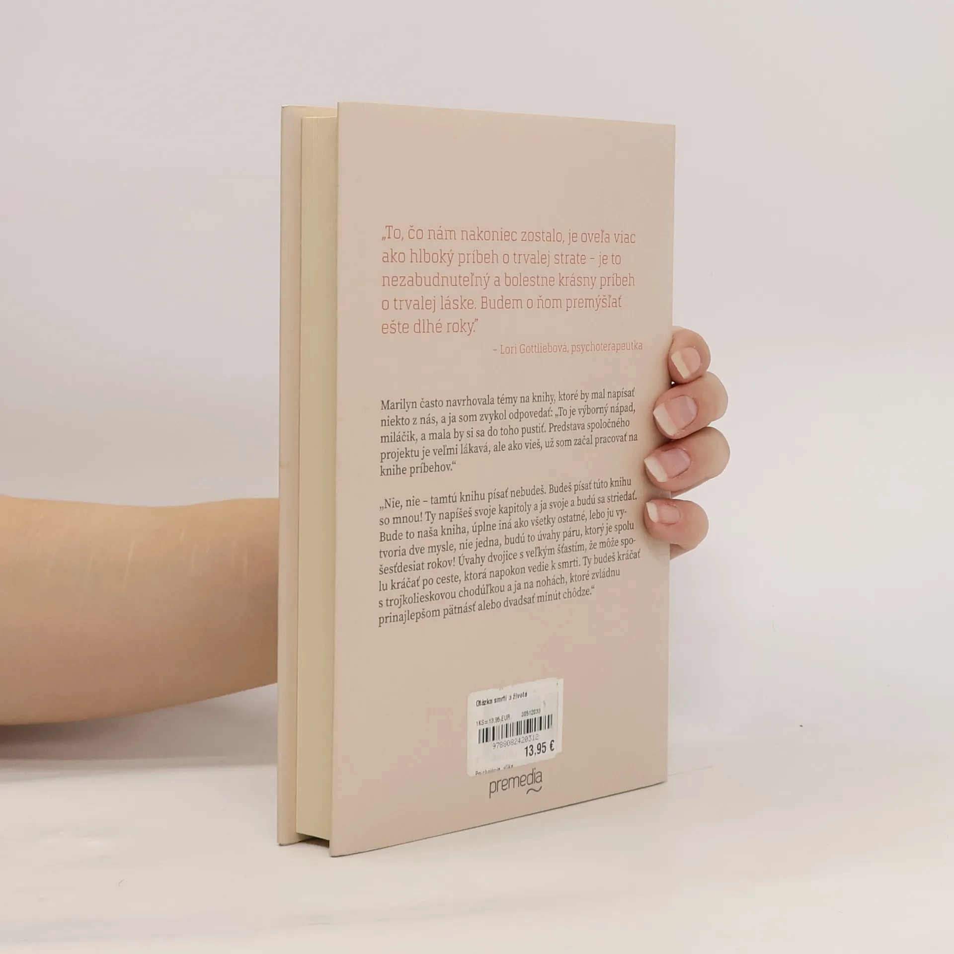Psychiater a spisovateľ Irvin Yalom zasvätil svoj život pomáhaniu ľuďom trpiacim úzkosťami a smútkom. Nikdy sa však nestretol s potrebou poradiť sám sebe, kým jeho manželke, uznávanej feministickej spisovateľke Marilyn Yalomovej, nediagnostikovali rakovinu. V knihe Otázka smrti a života sa Marilyn a Irv delia o svoje skúsenosti s tým, ako sa pustili do nového boja: umožniť Marilyn zomrieť dobrou smrťou a Irvovi žiť ďalej bez nej. V striedavom rozprávaní o ich posledných spoločných mesiacoch a Irvových prvých mesiacoch osamote nám ponúkajú vzácny pohľad do tváre smrteľnosti a vyrovnávania sa so stratou milovanej osoby. Manželia Yalomovci mali veľa požehnania – milujúcu rodinu, dom v Palo Alto pod nádherným starým dubom, veľký okruh priateľov, vášnivých čitateľov po celom svete a dlhé, naplnené manželstvo – ale čelili smrti tak ako všetci ostatní. S múdrosťou a láskou, ktorá v ich prípade trvala takmer sedemdesiat rokov, skúmajú univerzálne otázky intimity, lásky a smútku. Kniha Otázka smrti a života, vychádzajúca z dvoch životných skúseností, je otvorenou ponukou pre každého, kto hľadá podporu, útechu a zmysluplný život.