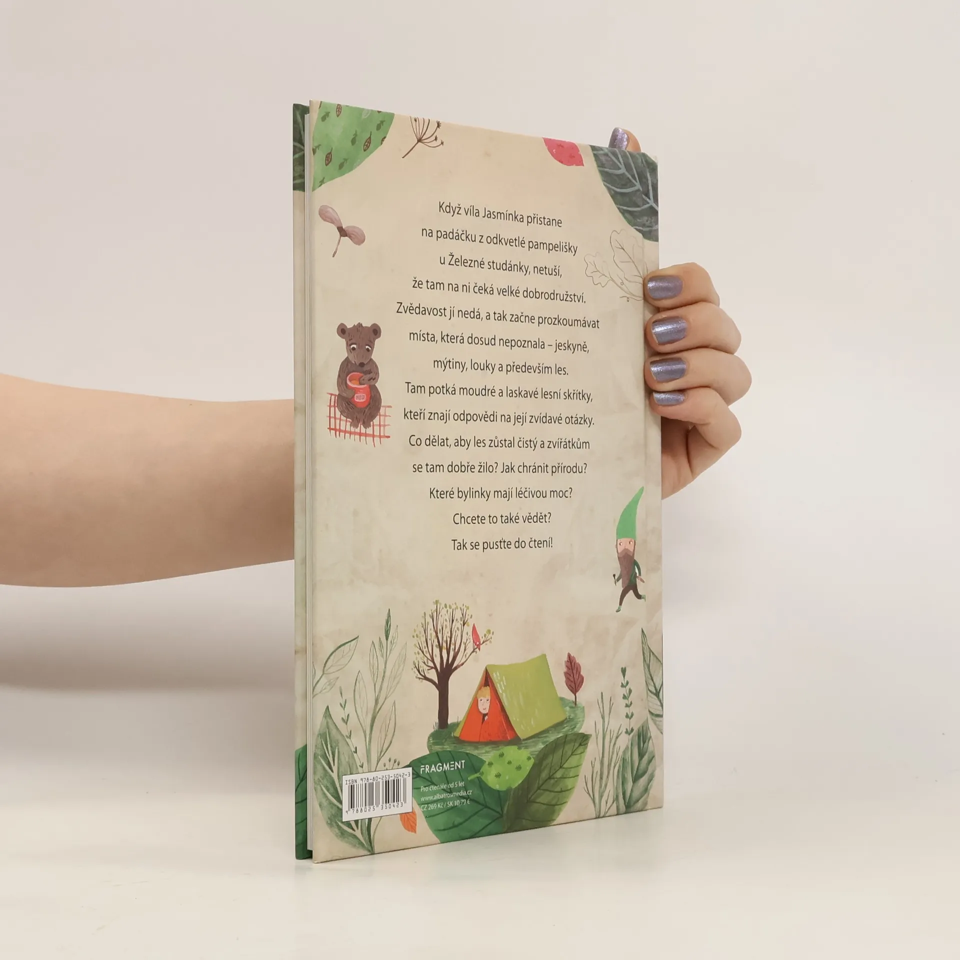 Když víla Jasmínka přistane na padáčku z odkvetlé pampelišky u Železné studánky, netuší, že tam na ni čeká velké dobrodružství. Zvědavost jí nedá, a tak začne prozkoumávat místa, která dosud nepoznala – jeskyně, mýtiny, louky a především les. Tam potká moudré a laskavé lesní skřítky, kteří znají odpovědi na její zvídavé otázky. Co dělat, aby les zůstal čistý a zvířátkům se tam dobře žilo? Jak chránit přírodu? Které bylinky mají léčivou moc? Chcete to také vědět? Tak se pusťte do čtení!