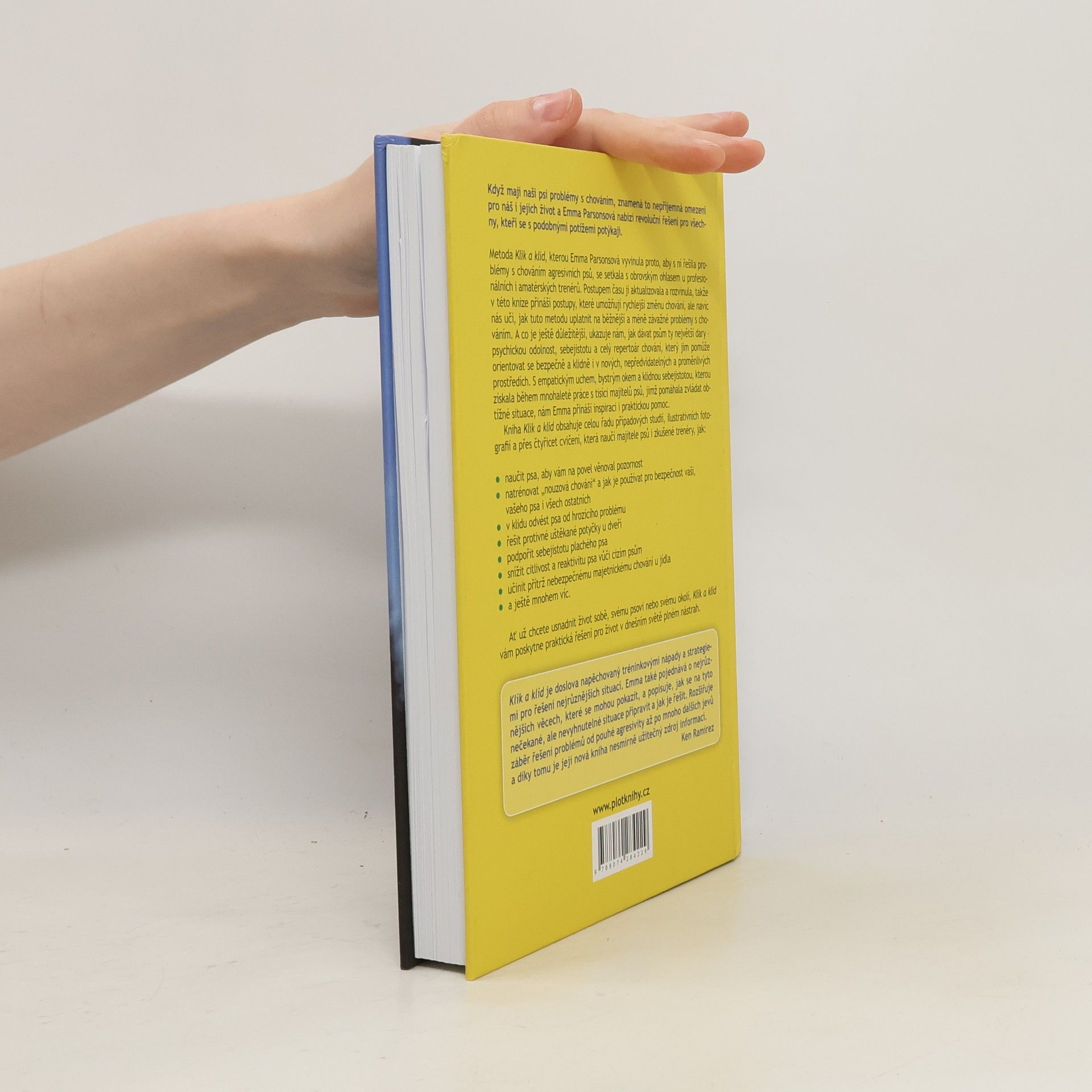 Text obsahuje postupy, které pomáhají řešit problematické chování různorodé povahy u psů, a to v rámci metody autorky "Klik a klid".Ukazuje, jak dávat psům ty největší dary – psychickou odolnost, sebejistotu a celý repertoár chování, který jim pomůže orientovat se bezpečně a klidně i v nových, nepředvídatelných a proměnlivých prostředích. Kniha obsahuje celou řadu případových studií, ilustrativních fotografií a přes čtyřicet cvičení, která naučí majitele psů i zkušené trenéry, jak: naučit psa, aby vám na povel věnoval pozornost, natrénovat „nouzová chování“.