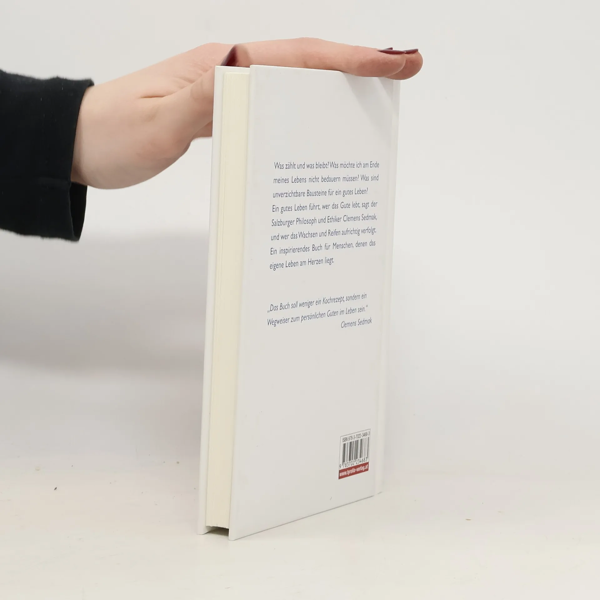 Gut lebt, wer das Gute lebt Anleitungen für das innere Wachstum Wenn man unser Leben mit einer Stadt vergleicht, so kann dieses Buch mit einem Stadtführer verglichen werden. Was sind die Sehenswürdigkeiten meines Lebens? Was zählt und was bleibt? Was sind unverzichtbare Bausteine für ein gutes Leben? Haben wir ein Leben oder leben wir ein Leben? Was möchte ich am Ende meines Lebens nicht bedauern müssen? Was verliere ich, wenn ich mein Leben verliere? Das Leben kann nicht nach einem vorgegebenen Lebensplan gelebt werden; es gibt Brüche, Krisen und stets die Möglichkeit eines Neuanfangs. Ein gutes Leben führt, wer das Gute zu leben versucht, sagt der Philosoph und Ethiker Clemens Sedmak. Und das Gute leben heißt auch, eine klare Richtung zu haben und das Leben als Weg zu sehen. Das Buch zeigt Wege auf für die Entwicklung von menschlicher Reife und für persönliches Wachstum. Es geht der Frage nach: Wie kann ich gut mit mir selbst auskommen? Und zeichnet Konturen der Freundschaft mit sich selbst. „Die Kunst, mit sich selbst befreundet zu sein, beinhaltet, sich selbst zu kennen und sich selbst im Wachsen fördern zu wollen.“ Clemens Sedmak Tipps: Lebenskunst lebensnah vermittelt Ein Geschenkbuch für sich selbst Und ein passendes Geschenk für Geburtstage, Jahrtage oder Meilensteine im Leben
