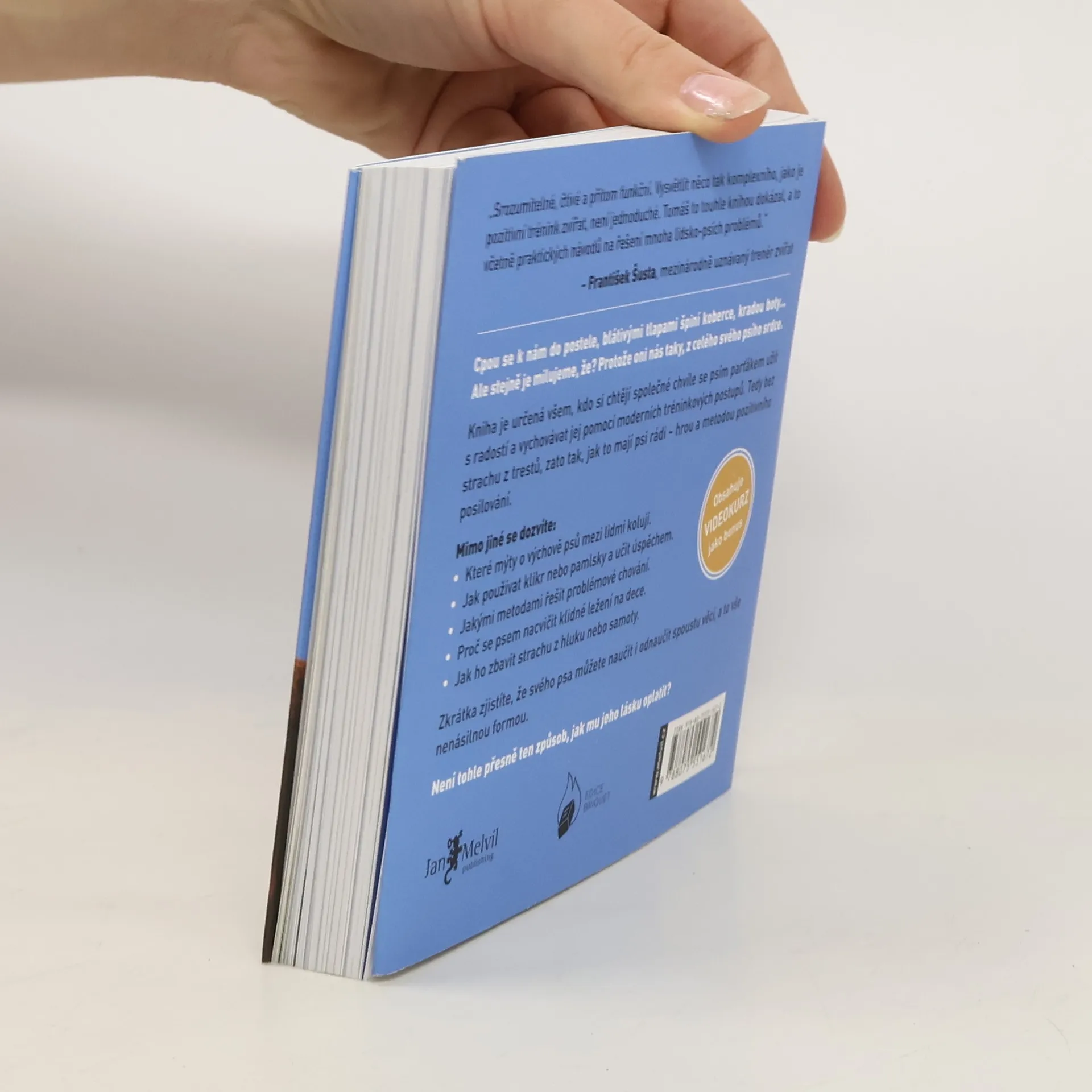 Manuál láskyplné a efektivní výchovy.Cpou se k nám do postele, blátivými tlapami špiní koberce, kradou boty… Ale stejně je milujeme, že? Protože oni nás taky, z celého svého psího srdce. Kniha je určena všm, kdo si chtějí společné chvíle se psím parťákem užít s radostí a vychovávat jej pomocí moderních tréninkových postupů. Tedy bez strachu z trestů, zato tak, jak to mají psi rádi – hrou a metodou pozitivního posilování. Mimo jiné se dozvíte: které mýty o výchově psů mezi lidmi kolují, jak používat klikr nebo pamlsky a učit úspěchem, jakými metodami řešit problémové chování, proč se psem nacvičit klidné ležení na dece a jak ho zbavit strachu z hluku nebo samoty. Zkrátka zjistíte, že svého psa můžete naučit i odnaučit spoustu věcí, a to vše nenásilnou formou. Není tohle přesně ten způsob, jak mu jeho lásku oplatit?