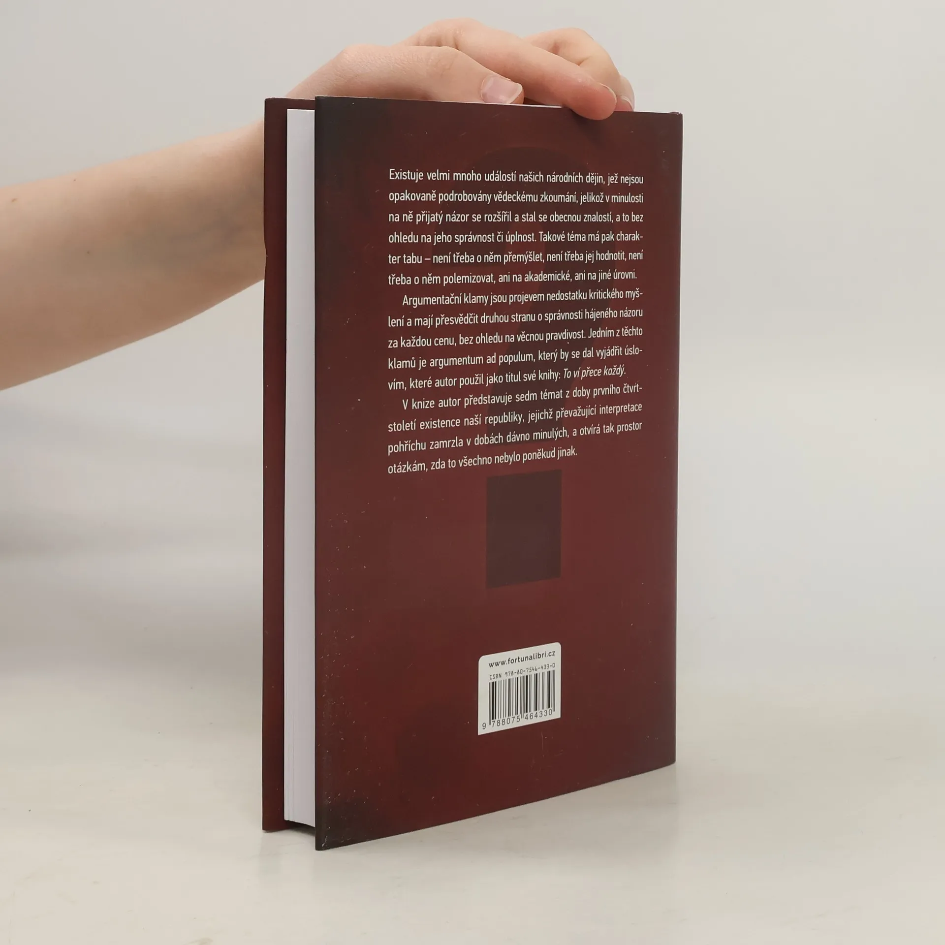 Existuje velmi mnoho událostí našich národních dějin, jež nejsou opakovaně podrobovány vědeckému zkoumání, jelikož v minulosti na ně přijatý názor se rozšířil a stal se obecnou znalostí, a to bez ohledu na jeho správnost či úplnost. Takové téma má pak charakter tabu – není třeba o něm přemýšlet, není třeba jej hodnotit, není třeba o něm polemizovat, ani na akademické, ani na jiné úrovni.Argumentační klamy jsou projevem nedostatku kritického myšlení a mají přesvědčit druhou stranu o správnosti hájeného názoru za každou cenu, bez ohledu na věcnou pravdivost. Jedním z těchto klamů je argumentum ad populum, který by se dal vyjádřit úslovím, které autor použil jako titul své knihy: To ví přece každý.V knize autor představuje sedm témat z doby prvního čtvrtstoletí existence naší republiky, jejichž převažující interpretace pohříchu zamrzla v dobách dávno minulých, a otvírá tak prostor otázkám, zda to všechno nebylo poněkud jinak.