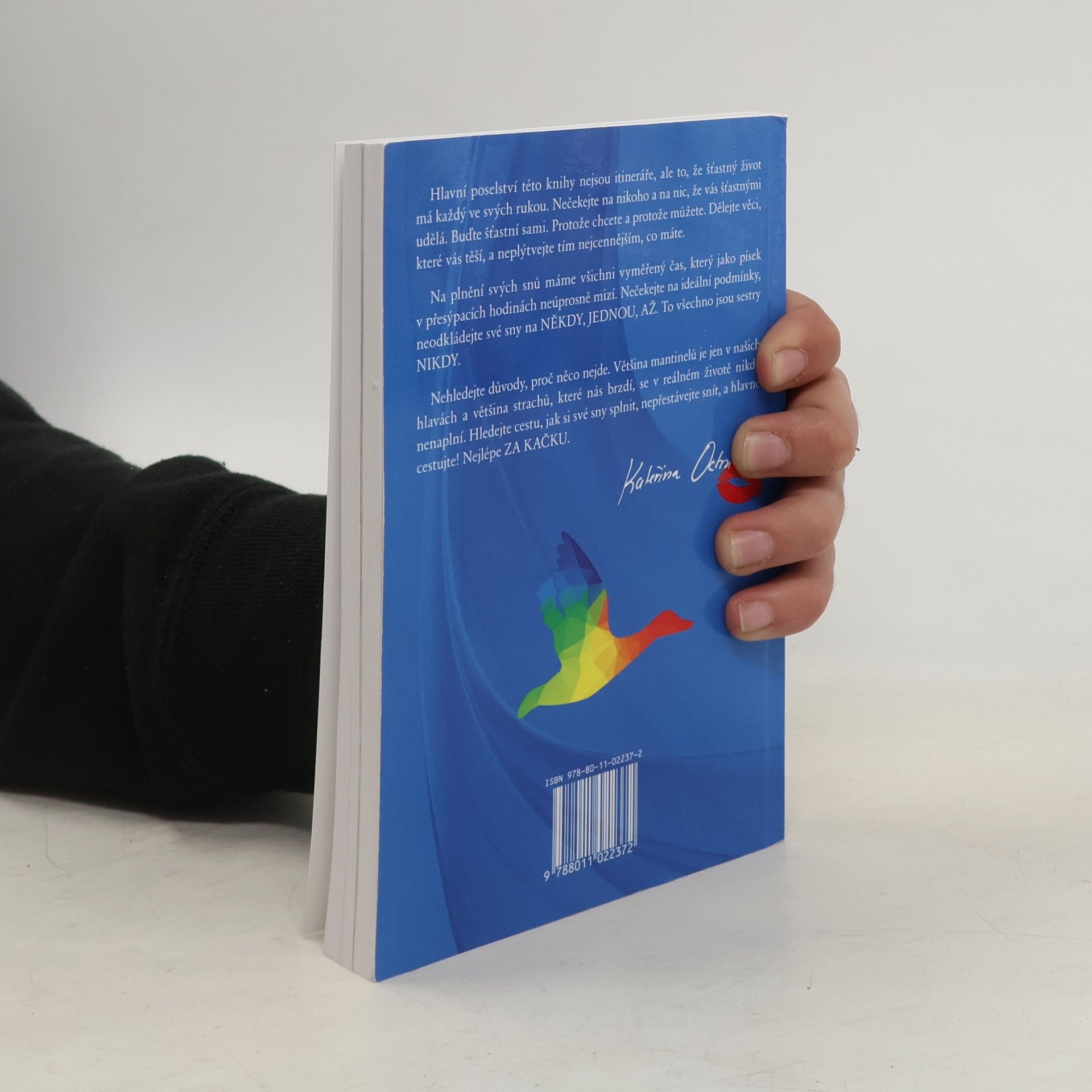 Hlavní poselství této knihy nejsou itineráře, ale to, že šťastný život má každý ve svých rukou. Nečekejte na nikoho a na nic, že vás šťastnými udělá. Buďte šťastni sami. Protože chcete a protože můžete. Dělejte věci, které vás těší, a neplýtvejte tím nejcennějším, co máte.Na plnění svých snů máme všichni vyměřený čas, který jako písek v přesýpacích hodinách neúprosně mizí. Nečekejte na ideální podmínky, neodkládejte své sny na NĚKDY, JEDNOU, AŽ. To všechno jsou sestry NIKDY.Nehledejte důvody, proč něco nejde. Většina mantinelů je jen v našich hlavách a většina strachů, které nás brzdí, se v reálném životě nikdy nenaplní. Hledejte cestu, jak si své sny splnit, nepřestávejte snít, a hlavně cestujte! Nejlépe ZA KAČKU.
