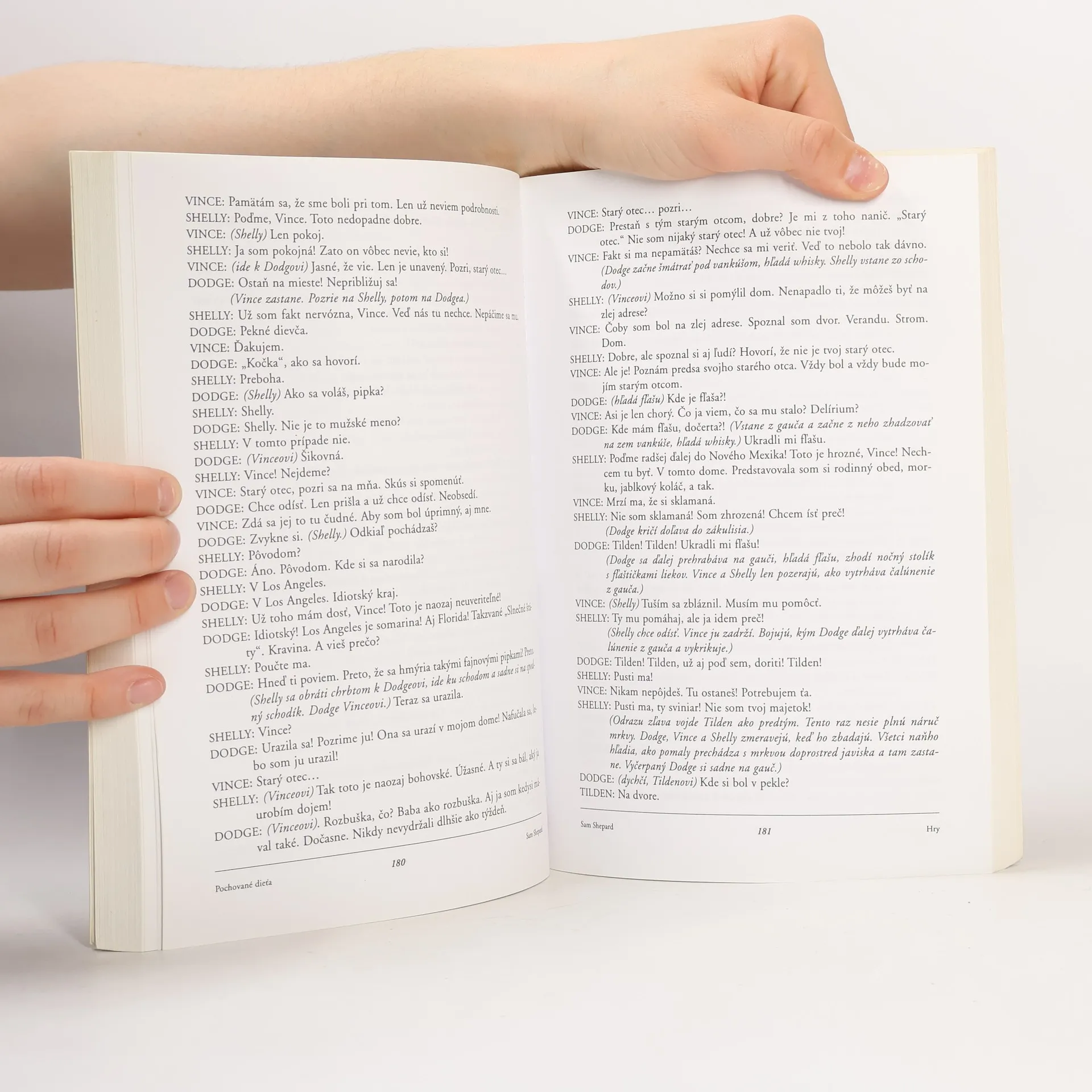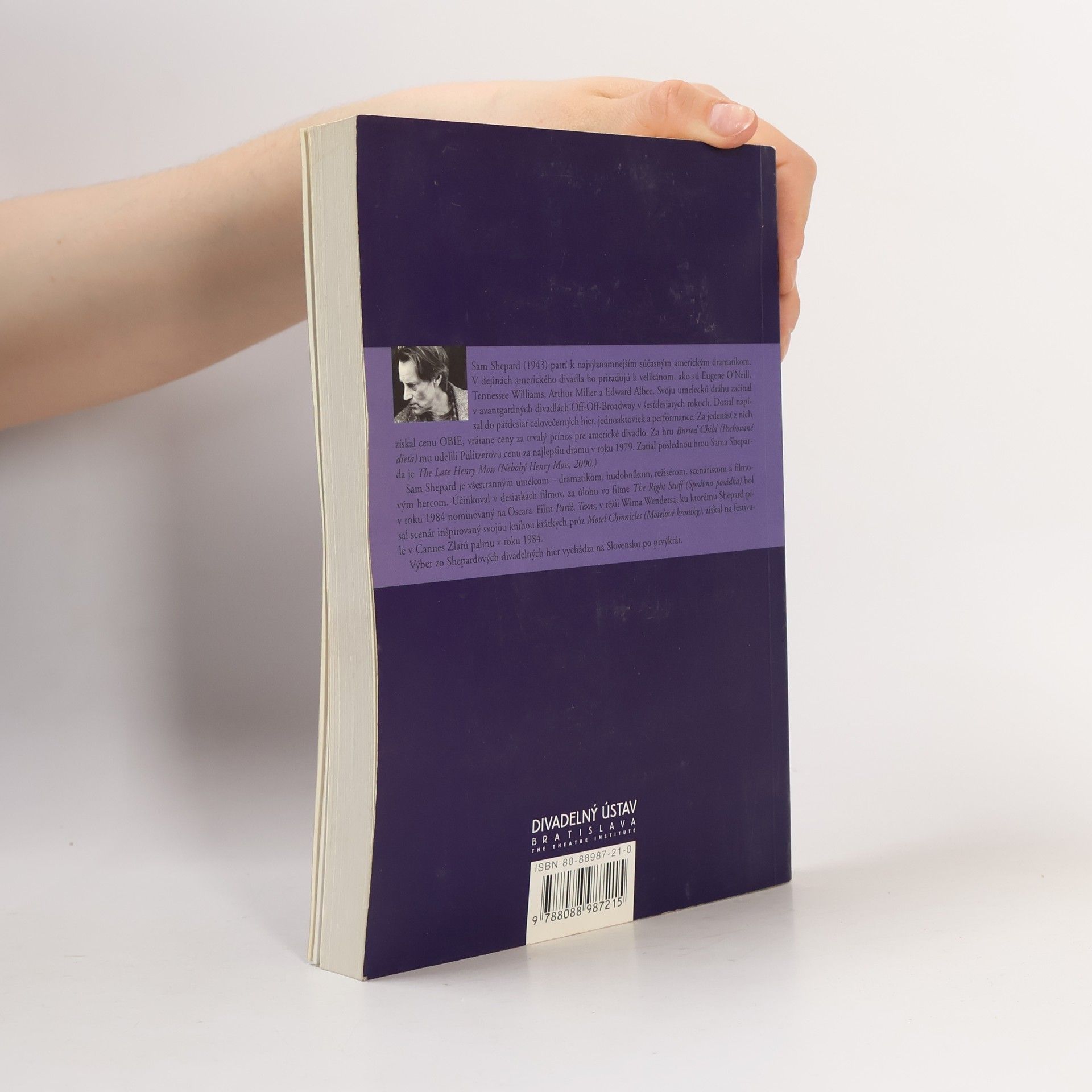 Divadelný ústav predstavil na Slovensku prvýkrát jedného z najvýznamnejších súčasných amerických dramatikov, označovaného za „dieťa Off-Off-Broadway” – spisovateľa, herca, režiséra a hudobníka Sama Sheparda. Okrem hier Skalka, Ikarova matka, Červený kríž, Krutá/Láska, Samovražda v b mol, Prekliatie hladujúcej triedy, Pochované dieťa, Kovbojka ako delo, Posadnutí láskou (preložili Juraj Šebesta, Danica Ruppeldtová-Haláková, Alexandra Ruppeldtová, Eva Levárska) zahŕňa výber autorove úvahy o divadle, interview. Štúdia editora Juraja Šebestu prináša ďalšie – u nás doteraz neznáme – informácie o Shepardovom diele.