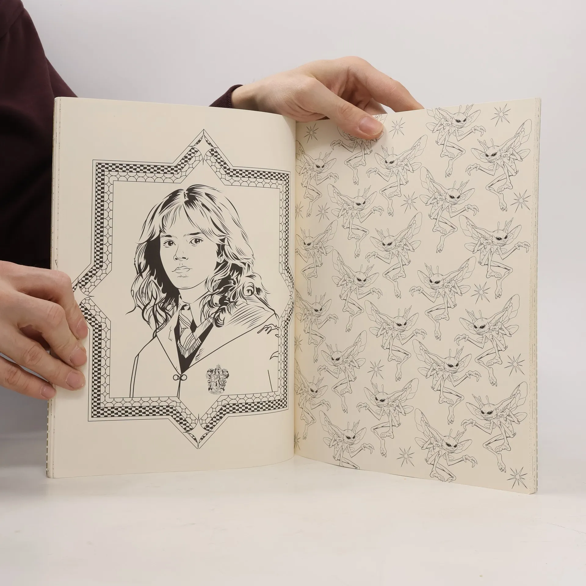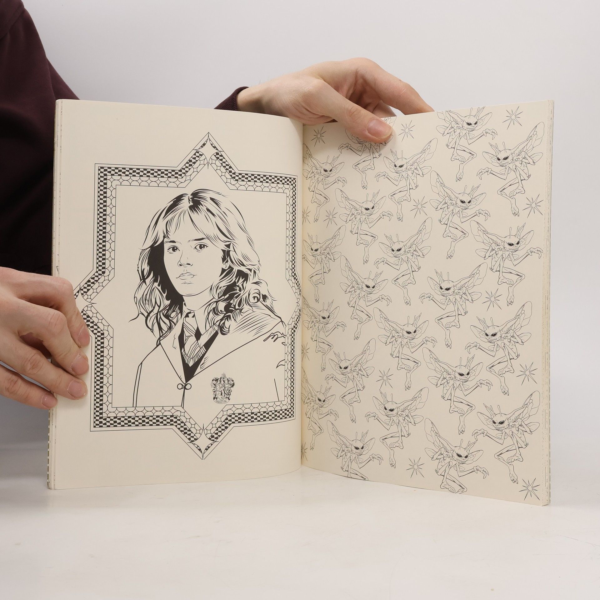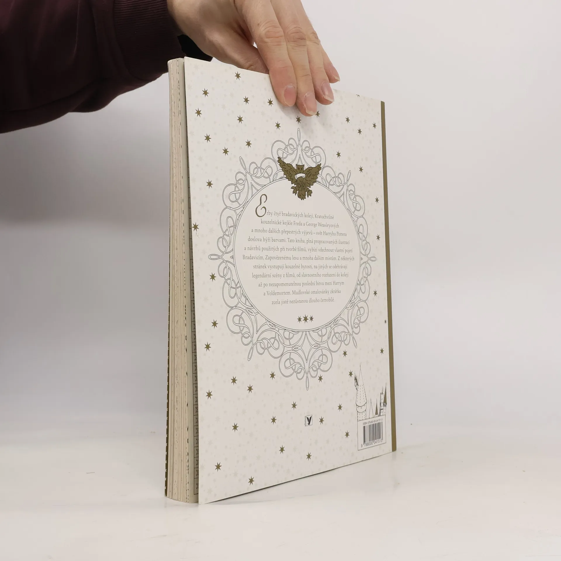 Erby čtyř bradavických kolejí, Kratochvilné kouzelnické kejkle Freda a George Weasleyových a mnoho dalších přepestrých výjevů – svět Harryho Pottera doslova hýří barvami. Tato kniha, plná propracovaných ilustrací a návrhů použitých při tvorbě filmů, láká vdechnout vlastní pojetí Bradavicím, Zapovězenému lesu a mnoha dalším místům. Z některých stránek vystupují kouzelné bytosti, na jiných se odehrávají legendární scény z filmů, od slavnostního rozřazení do kolejí až po nezapomenutelnou poslední bitvu mezi Harrym a Voldemortem. Naše atraktivní omalovánky zcela jistě nezůstanou dlouho černobílé.