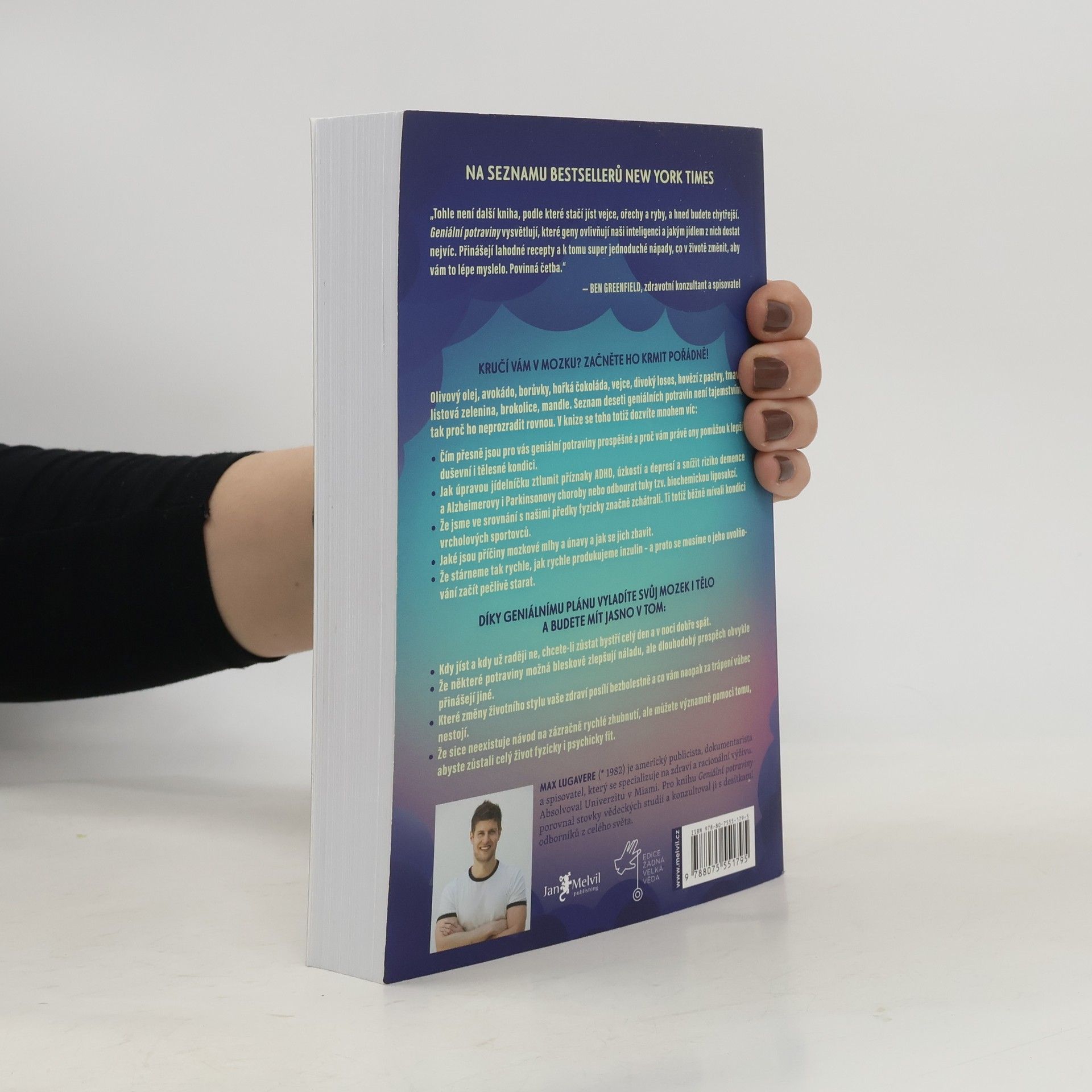 Co se stane, když někdo propojí výzkum optimalizace mozkových funkcí a nutriční psychiatrie? Kromě toho, že dostanete doporučení jíst čokoládu, a už bychom vlastně mohli skončit s vysvětlováním, také pochopíte souvislost mezi tím, co jíte, a tím, jak se cítíte, myslíte, jak se se soustředíte a učíte, jak si pamatujete, analyzujete; zkrátka zjistíte, která jídla dělají dobře nejen tělu, ale i mozku. A mozek jste vy a celý váš život, tak ať je i ten váš geniální!